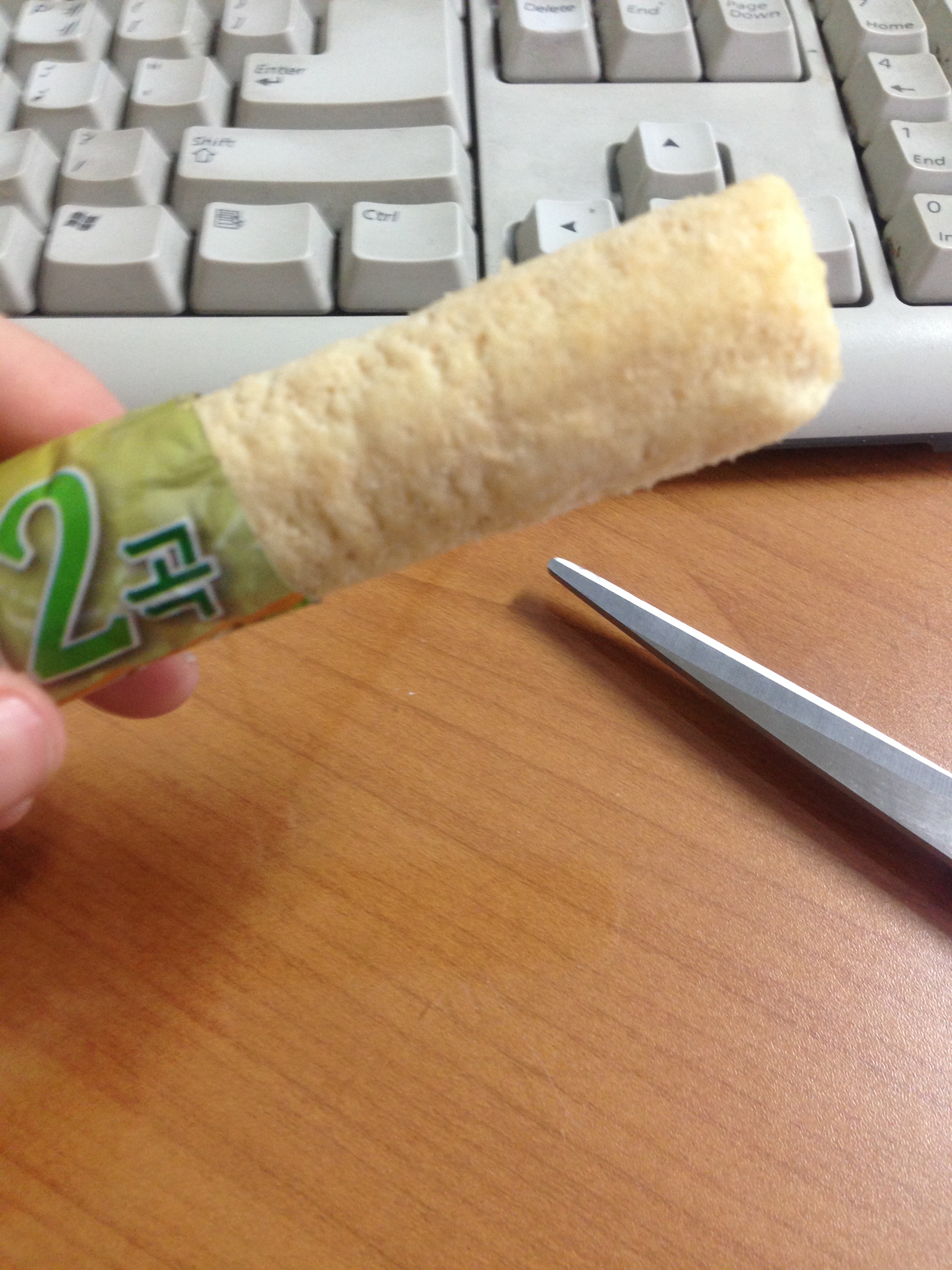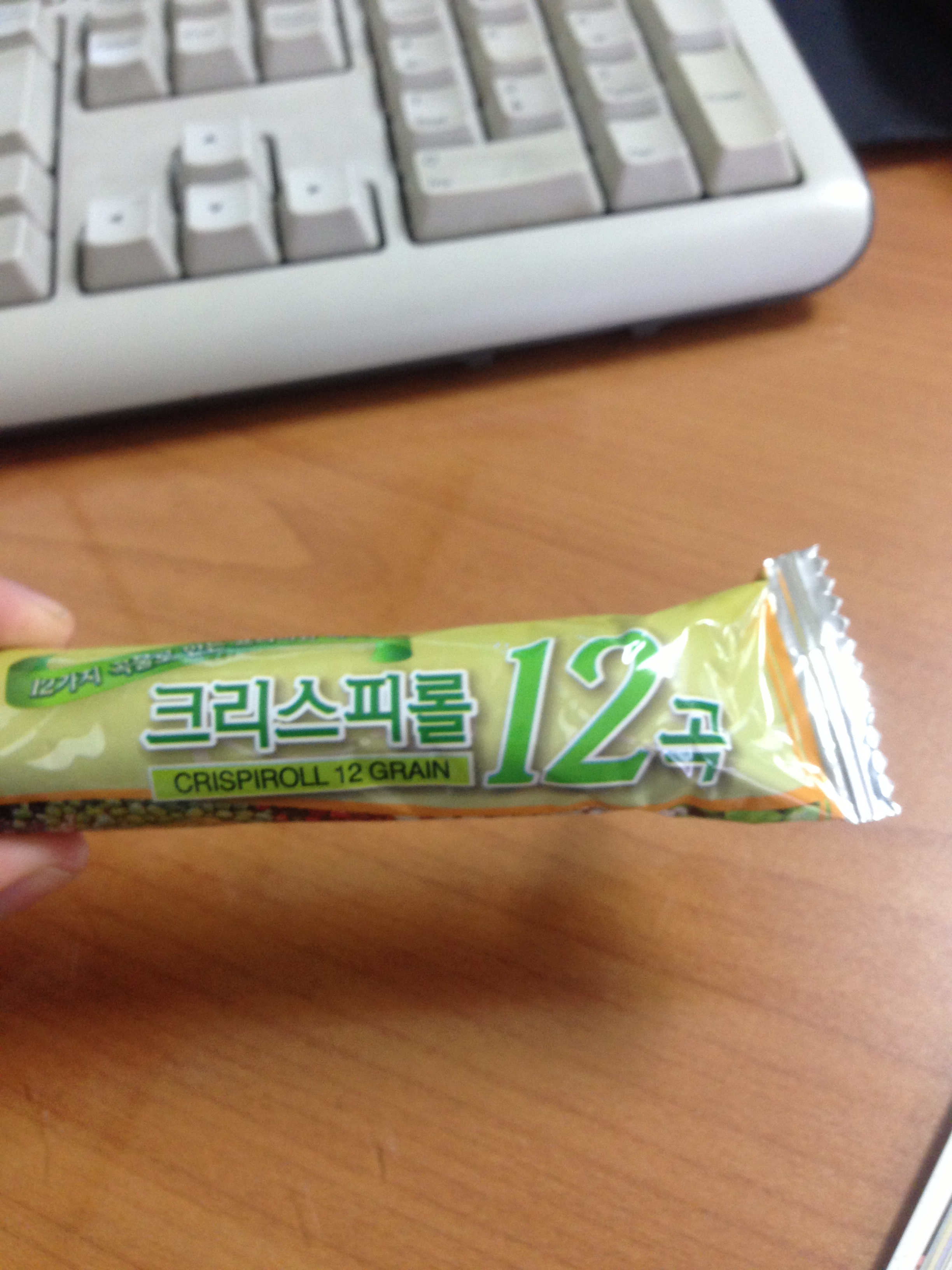 Moving on to treats my teachers have given me that I actually enjoyed, I’ll start with the mystery 12 grain sticks.  One of my teachers who occupies a cubicle kiddie corner from me gave me a small foil package and said “For you”.  I looked at it, and it just said, “12 grains crispiroll.”IMG_0015  So I was expecting some sort of granola bar to emerge from the wrapper, but what I encountered was something completely different. IMG_0016 Instead of seeing a granular bar, I was greeted by a light yellow, crumbly tube.  I took a bite, and it was an interesting experience.  Not only was it crumbly, but the interior somehow seemed to be filled with some sort of cheese flavored substance I couldn’t see for the life of me.  It must have been hidden under the interior layer, but it was like eating a healthy version of cheese puffs.  Another great treat from my students was chalboribbang.