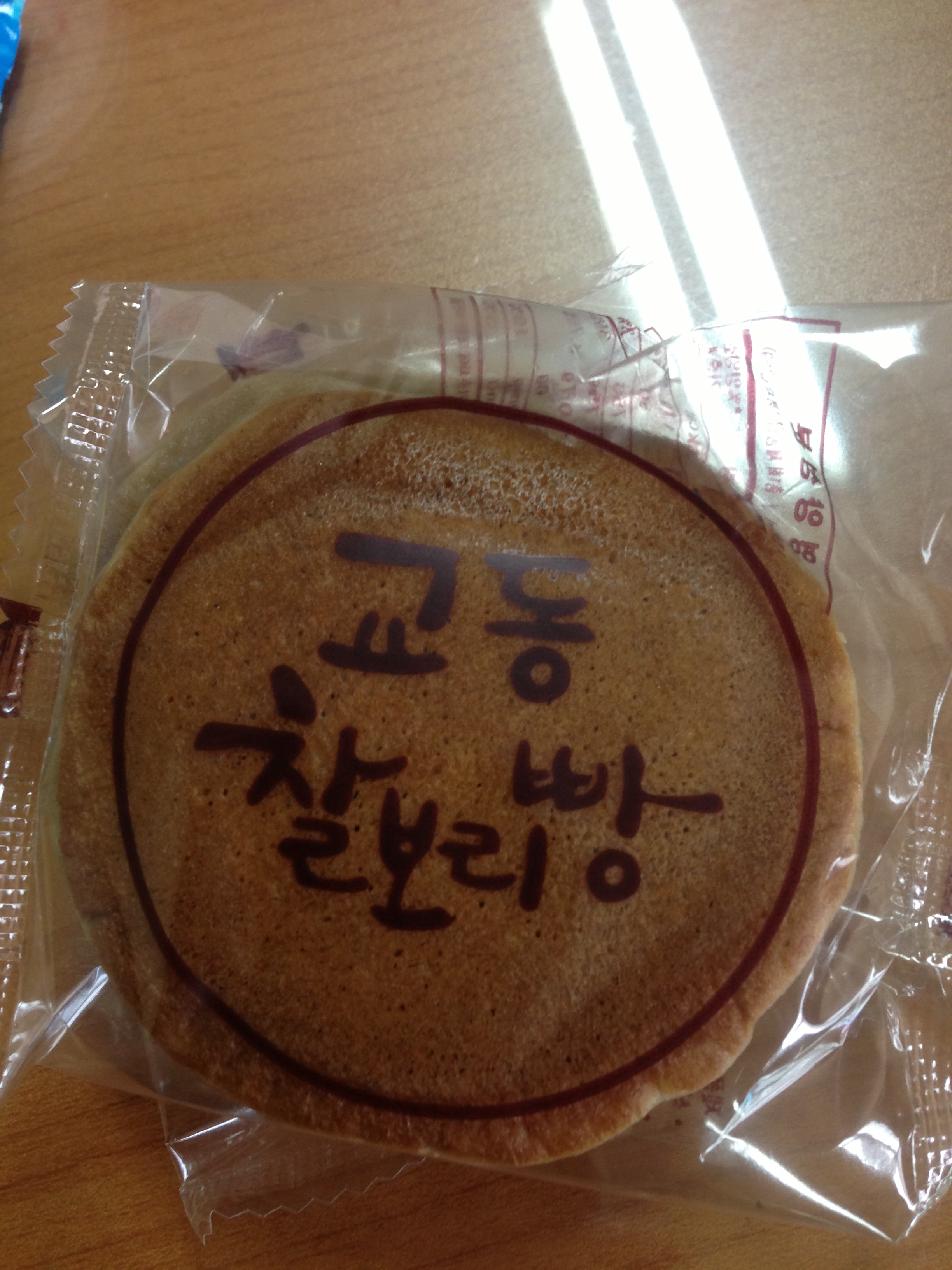Although the name is somewhat long, these little sandwiches really hit the spot.  Our 5th graders took a trip to Gyeongju, and they came back with boxes of chalboribbang.IMG_0017  Apparently they are the region’s specialty and have been made since the Silla dynasty of Korea (57 BC to 935 AD).  The perfect combination of freshness and delicious taste explains why they have been around for millennia.  The small pancakes are made from barley and between the cakes is a sweet paste made from azuki beans.  They’re moist, chewy, and have a very slight maple syrup taste.IMG_0019  Perhaps that last part comes down to my love for pancakes, but chalboribbang pack a lot of quality flavor into a small package.  Finally, there are two small snacks I tried this weekend that I would like to comment on.