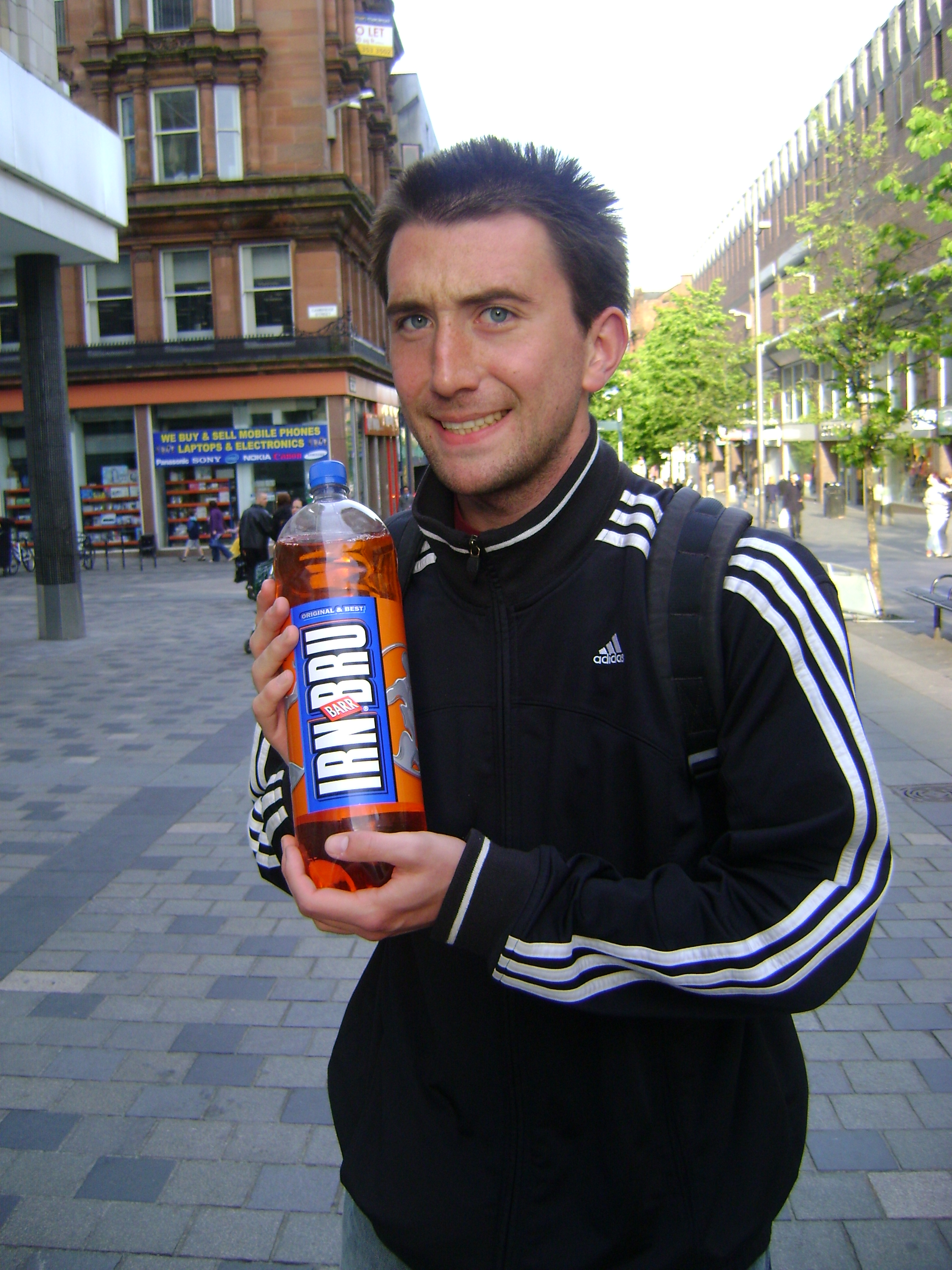It was rich, beefy, yet slightly nutty, but it wasn’t heavy at all. It was almost like a meat granola in texture which I could imagine was due to the oatmeal. The oat crackers on the side didn’t help it at all since they tasted like eating cardboard coasters. The neeps were ok. They were lightly salted with more of a neutral flavor. The tatties tasted like standard mashed potatoes. After finishing off my haggis, I should have washed it down with a warm glass of Glenfiddich, but I found something that was both eye-catching and super Scottish. It was a drink called Irn Bru or Iron Brew pronounced with a thick Scottish burr.