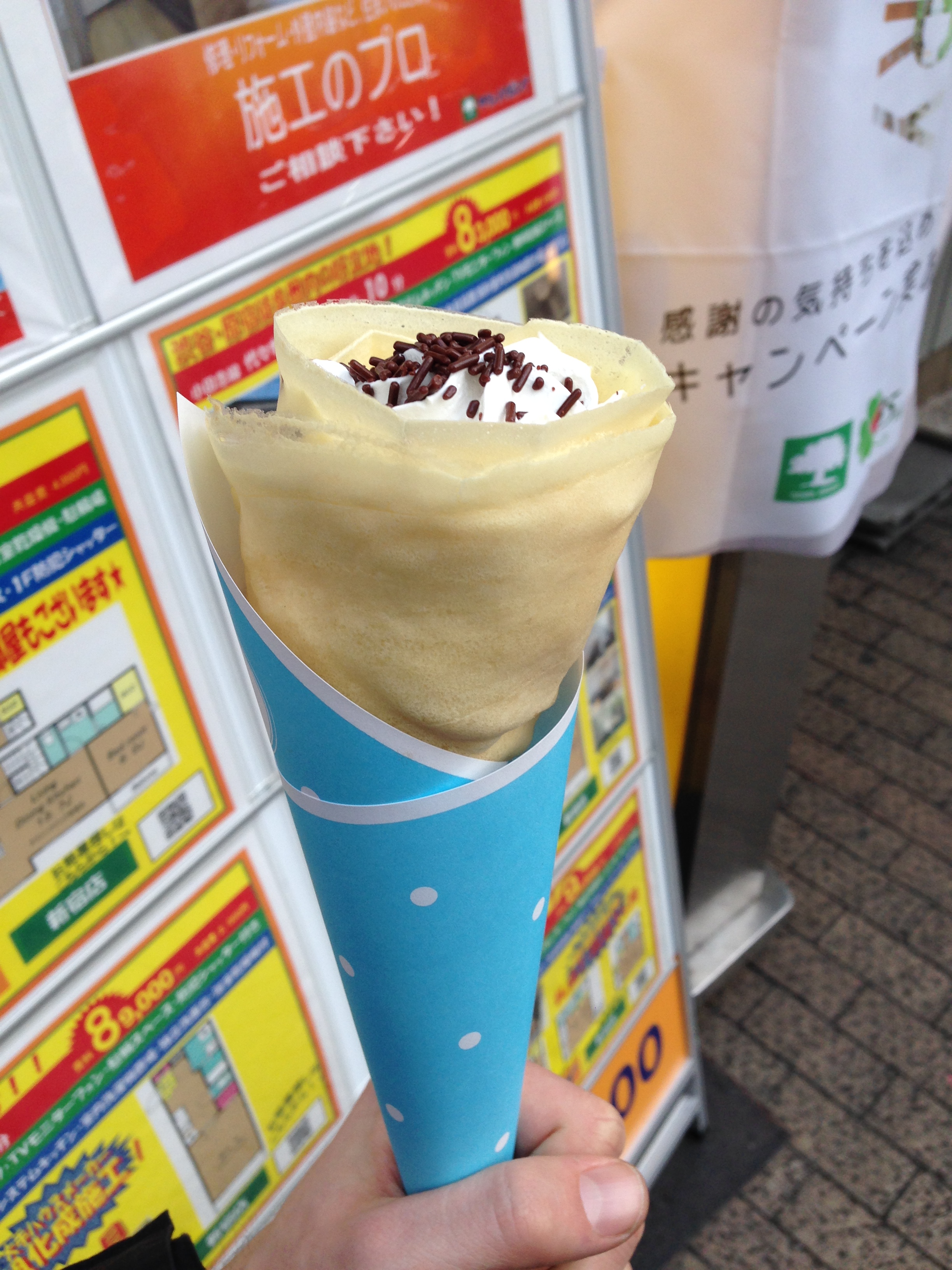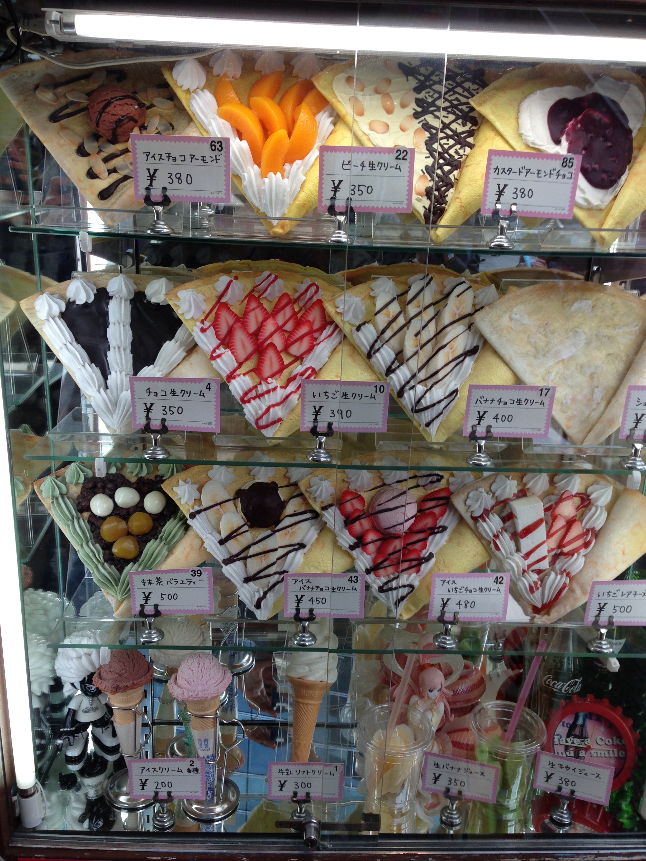 It was another encounter with my friend the coin-operated ordering machine, so I matched up the symbols to the Nutella and whipped cream crepe (second row from the top on the left).