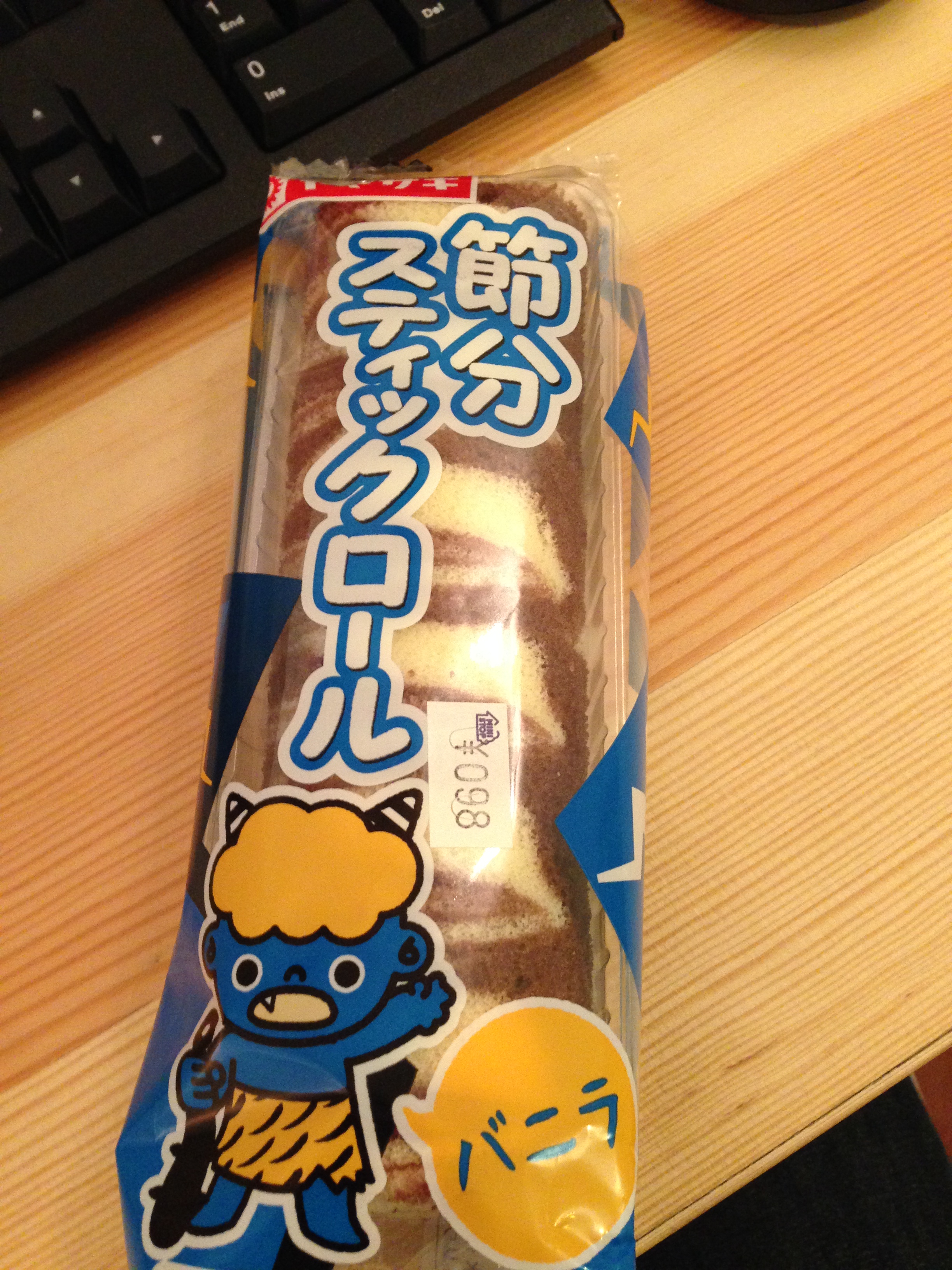 I seemed to have made friends at the local Mini Stop since they guided me to my favorite snack cake section they were actively stocking when I walked in the door. So I wanted to get something a bit different to eat, so I plumped for a roll cake with a caveman on it along with an innocent looking bun. However, turns out the more innocuous looking sweet bun ended up being filled with savory, cold curry. Another wonderful adventure down Japanese Illiteracy Avenue! It wasn’t terrible though as I finished it. Thankfully, the caveman treat was a strawberry cream cake that was light, fluffy, and filling but probably terrible for my sugar levels.