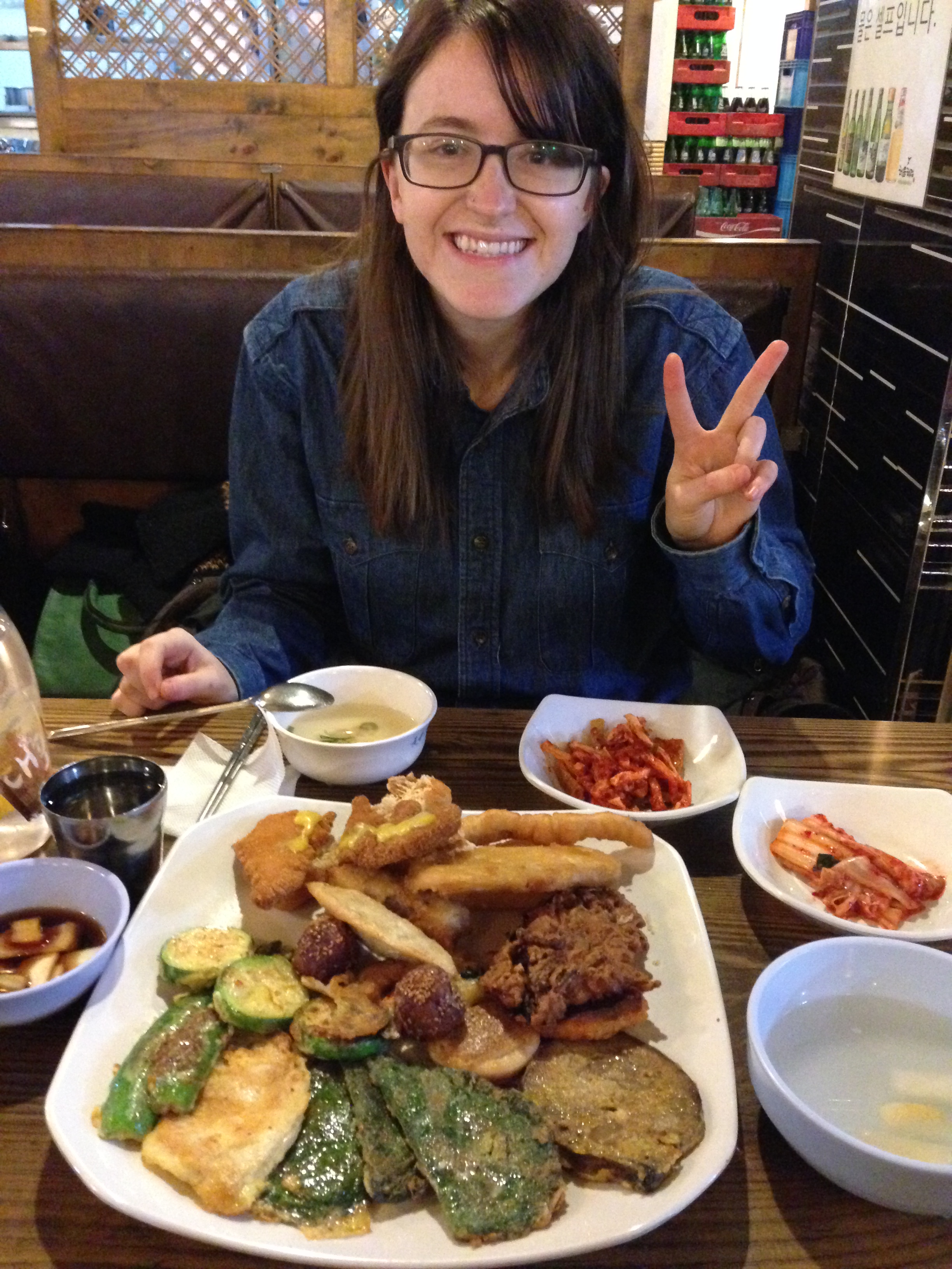 The scallop was quite delectable as it was rich and buttery like breading that enveloped it, and the oyster was quite good aside from a rubbery texture that might put off some diners. The potato bread was a bit of a mystery to me at first since I was anticipating it to be stuffed most likely with pork, but it just ended up being a ball of fried dough. Last and definitely the least favorite of all the food I tried there were the millet cakes. They looked almost like mini-red velvet cakes minus the cream cheese frosting, but they were the opposite of the tantalizing dessert. Not only did it taste quite musty, but it was filled with red bean paste! Arrghhh, my Korean culinary arch-nemesis. Foiled once again from having a completely fantastic dinner. That minor bump aside, we ended up eating a ton of food for about 12,000 W each which is a bargain any way you slice it.
