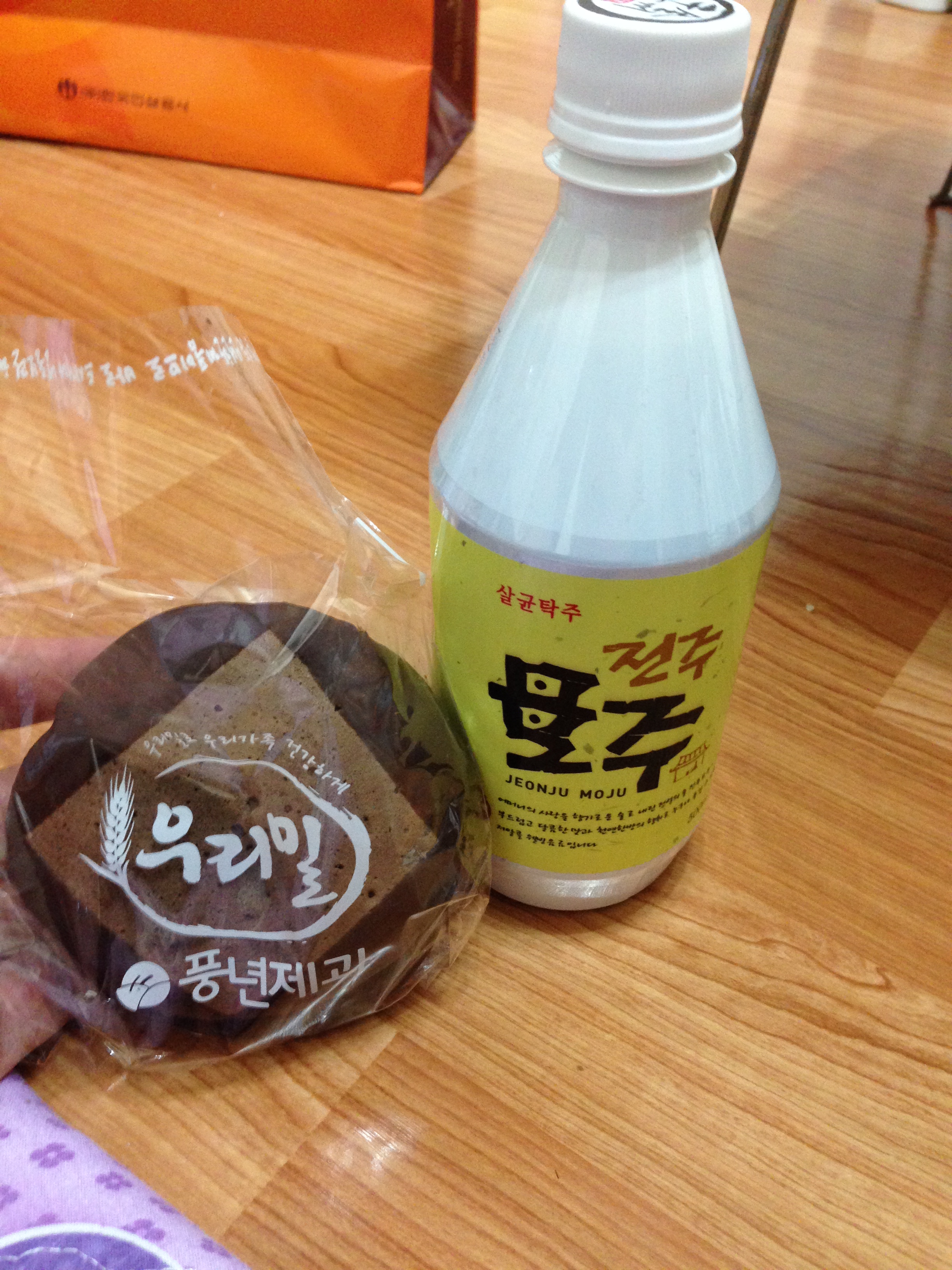 My last full day in Korea finished with a gift of food from my other friend Bora in the form of chocopies and moju.