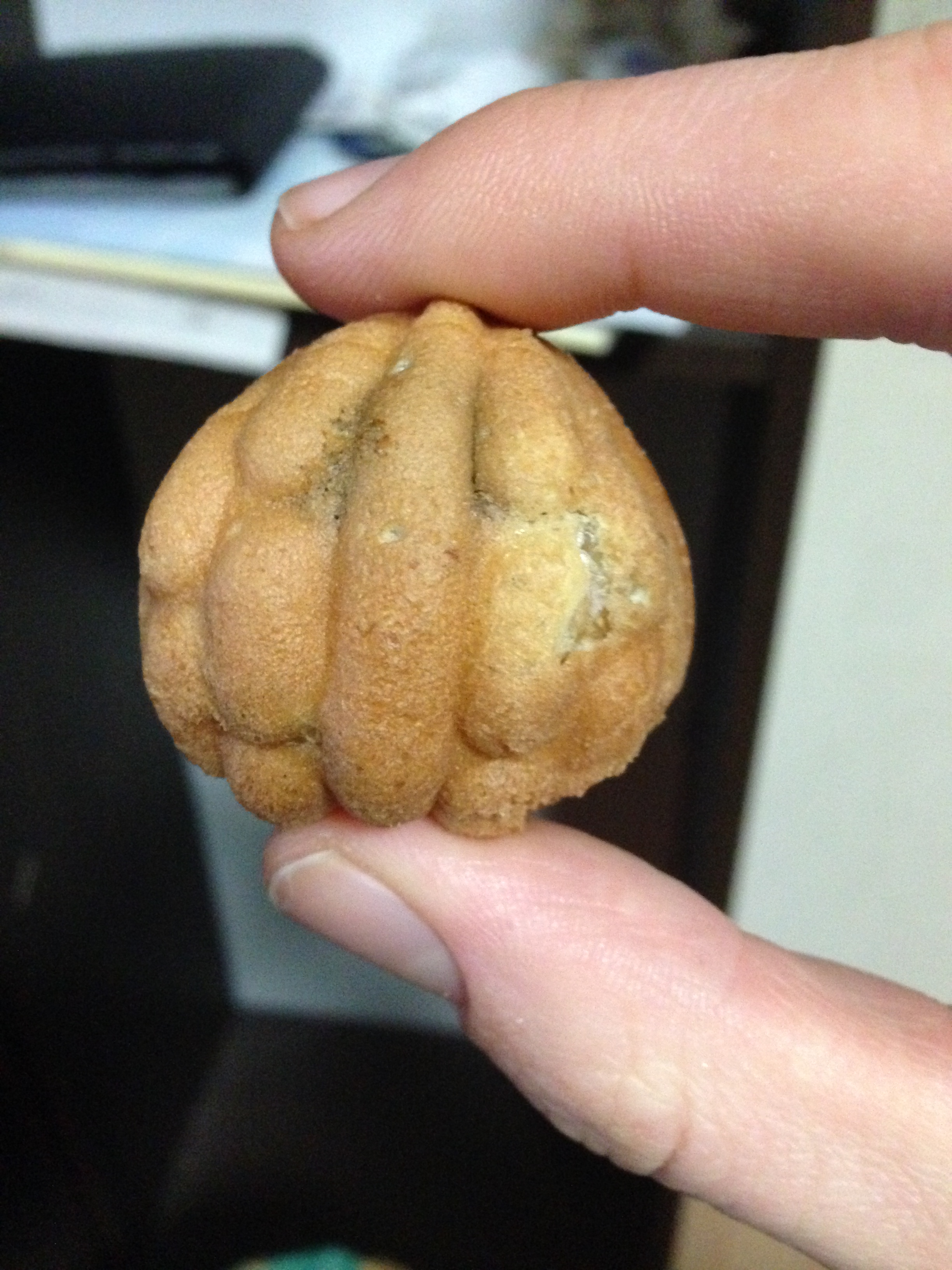 On the same day of my cactus chocolate adventure, I was gifted some interesting snacks. It was these cakes made to look like walnuts, and they do do quite an impressive walnut impression.