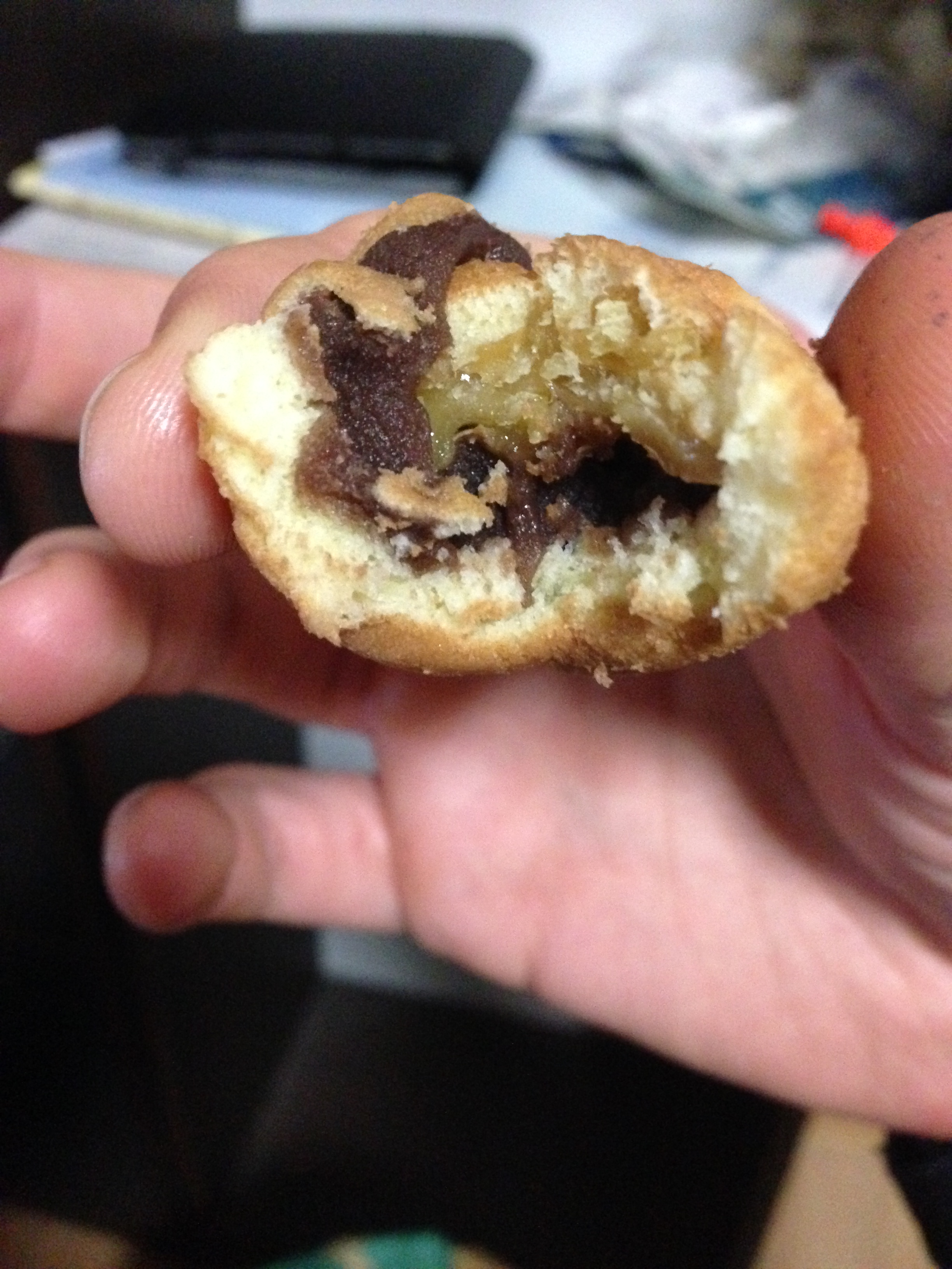 The exterior mimics the deeply grooved facade, but that’s where the similarities fade. Actually, fade doesn’t do justice to describe the shock I received after biting into it. Naturally, I was greeted with a big mouthful of my old nemesis: red bean paste.