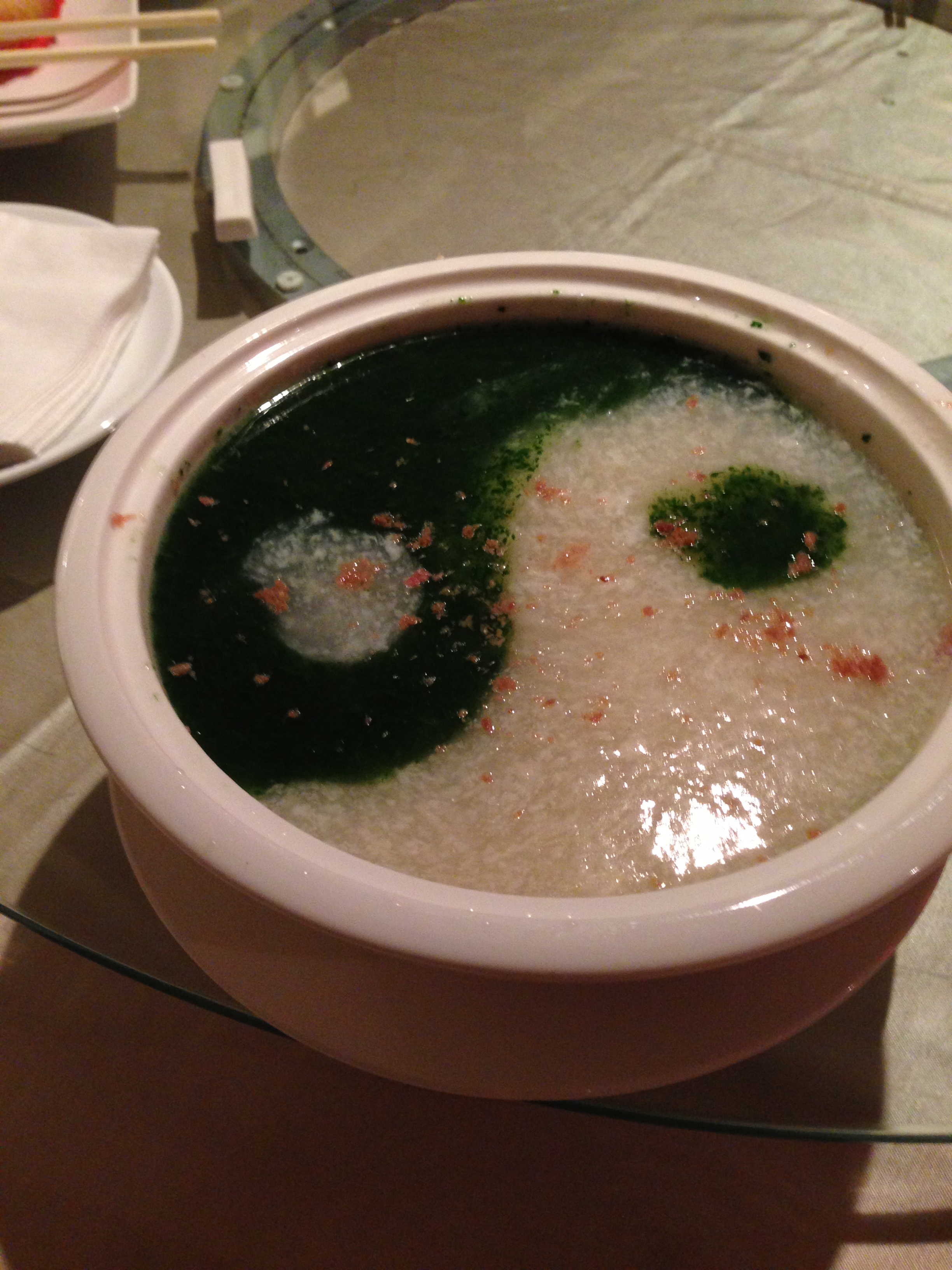 The next food won points in my book not just for the rich seaweed taste, but also for presentation points. This Taoist inspired soup was an egg based broth with an infusion of seaweed.