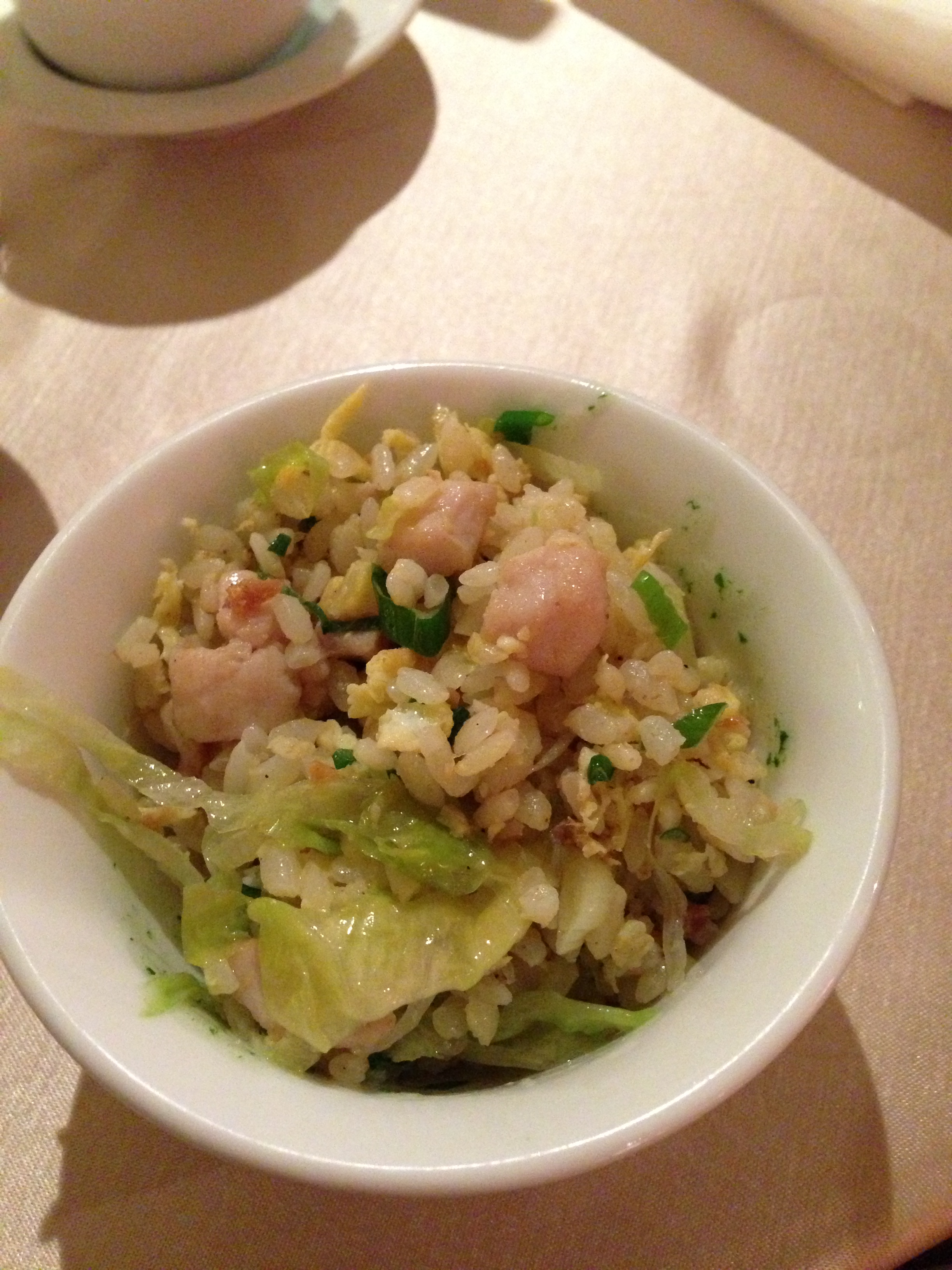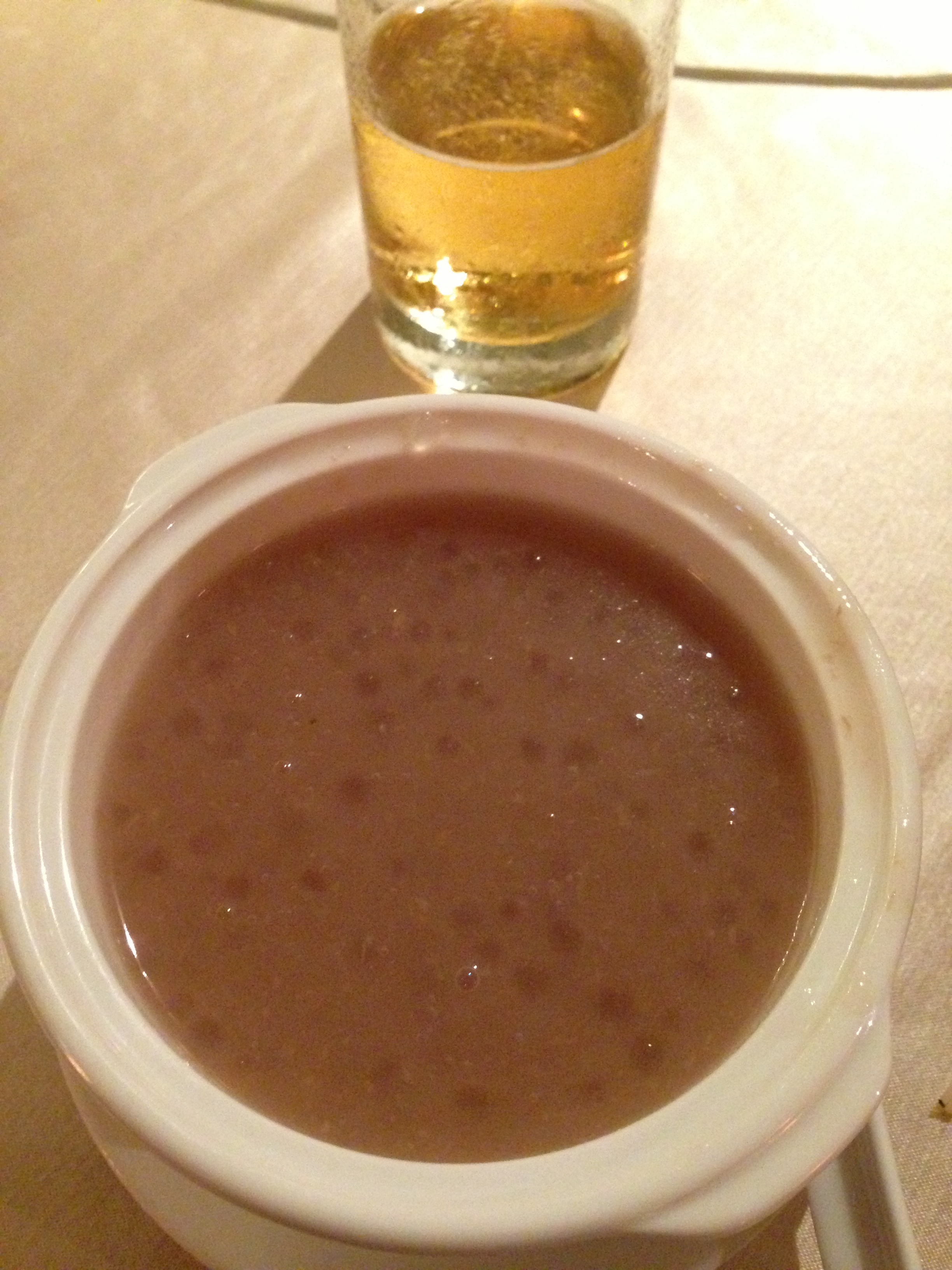 The beef noodle soup was similar to the bowl I had back in Hong Kong at Din Tai Fung, i.e. a beefy ambrosia of sorts. As for the rice, it was great ,but I suspect there was a problem with the translation on the menu because I think what they meant was that it was fried rice with a slice of sweet potato on the top along with a soupçon of soy sauce. I was expecting rice mixed with chunky white shortening or something along those lines. Then there was dessert which was a tofu soup with peanuts.
