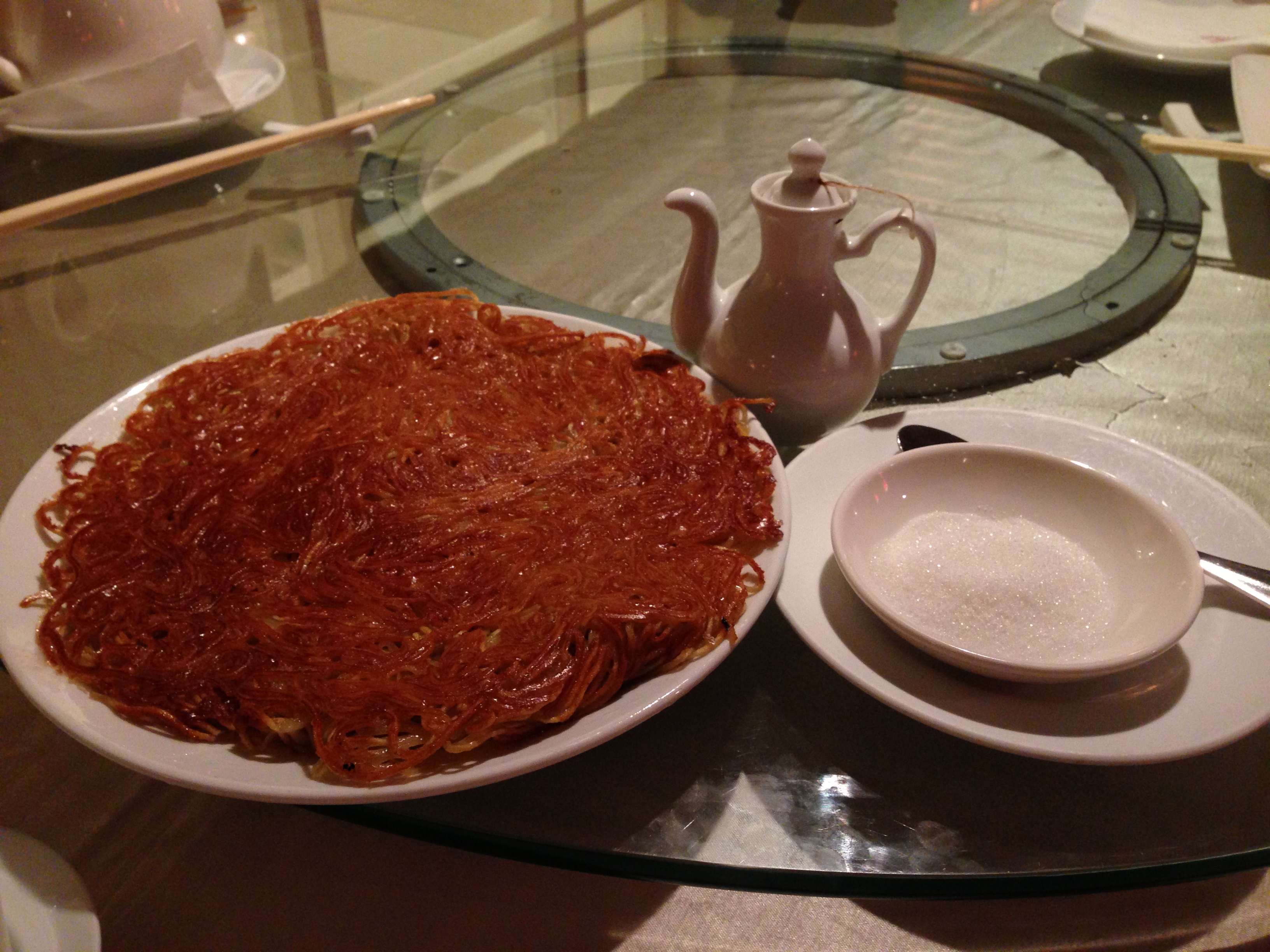 First, there was a crunchy noodle pancake which you first had to put sugar on it and then pour some vinegar over the sugar. It was a strange yet satisfying mixture of crunchy fried noodles along with a sweet and sour flavor profile that complimented the bold texture.