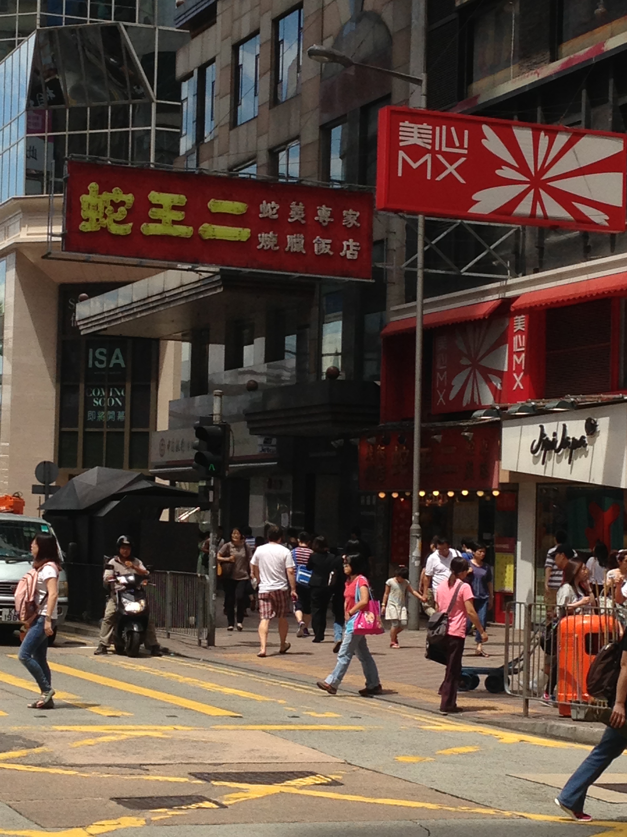 As soon as I got settled in my hostel, I asked the front desk where I could eat some good snake. They directed me to the Sogo department store because they thought I meant, “snack”. I clarified by making a sidewinding motion with my hands, and their eyes lit up with a mixture of excitement and slight bewilderment at the fact that a foreigner would want to search out such a food not normally served for western palates. Either way, they gave me the address of a place called Lee Kum Kee which is located in Central outside of the Causeway Bay metro station a little bit north of the intersection of Percival and Lockhart Road.