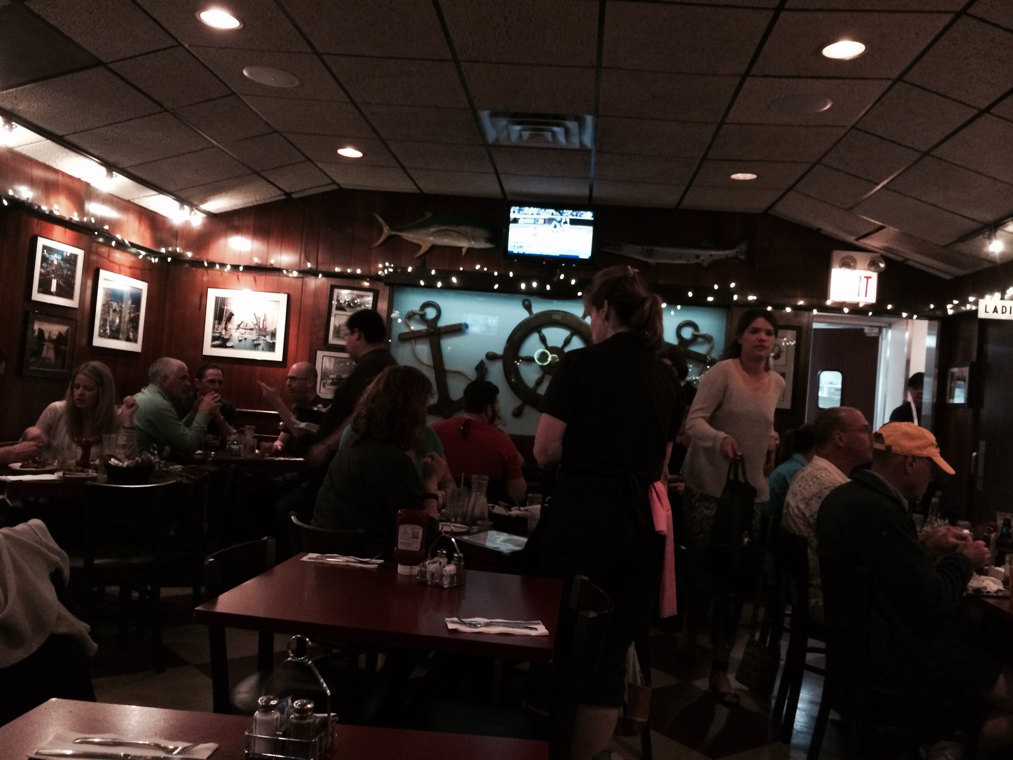 Everything was phenomenal. The mashed potatoes were creamy with just the right amount of sinus-clearing horseradish. The Brussels sprouts were roasted and slightly burnt and crunchy but not terribly charred. As for the meat and sauce, it was grilled to optimum juiciness which wasn’t overshadowed by the rich Bearnaise sauce. Can’t say enough good things about this dish. Janice’s shellfish and ravioli had a lot of fresh seafood from the nearby harbor including clams, shrimp, and crab along with peas and ravioli in a Parmesan sauce.