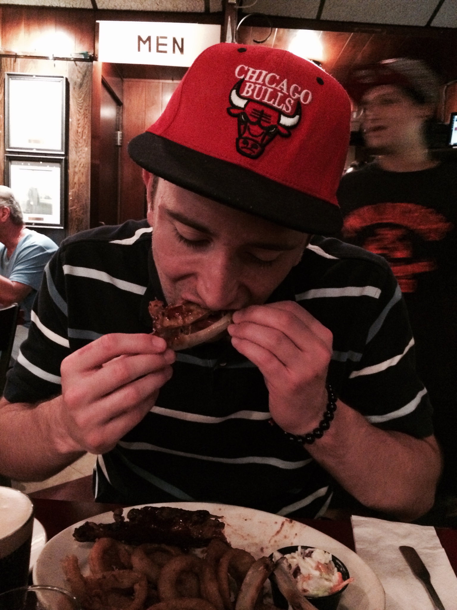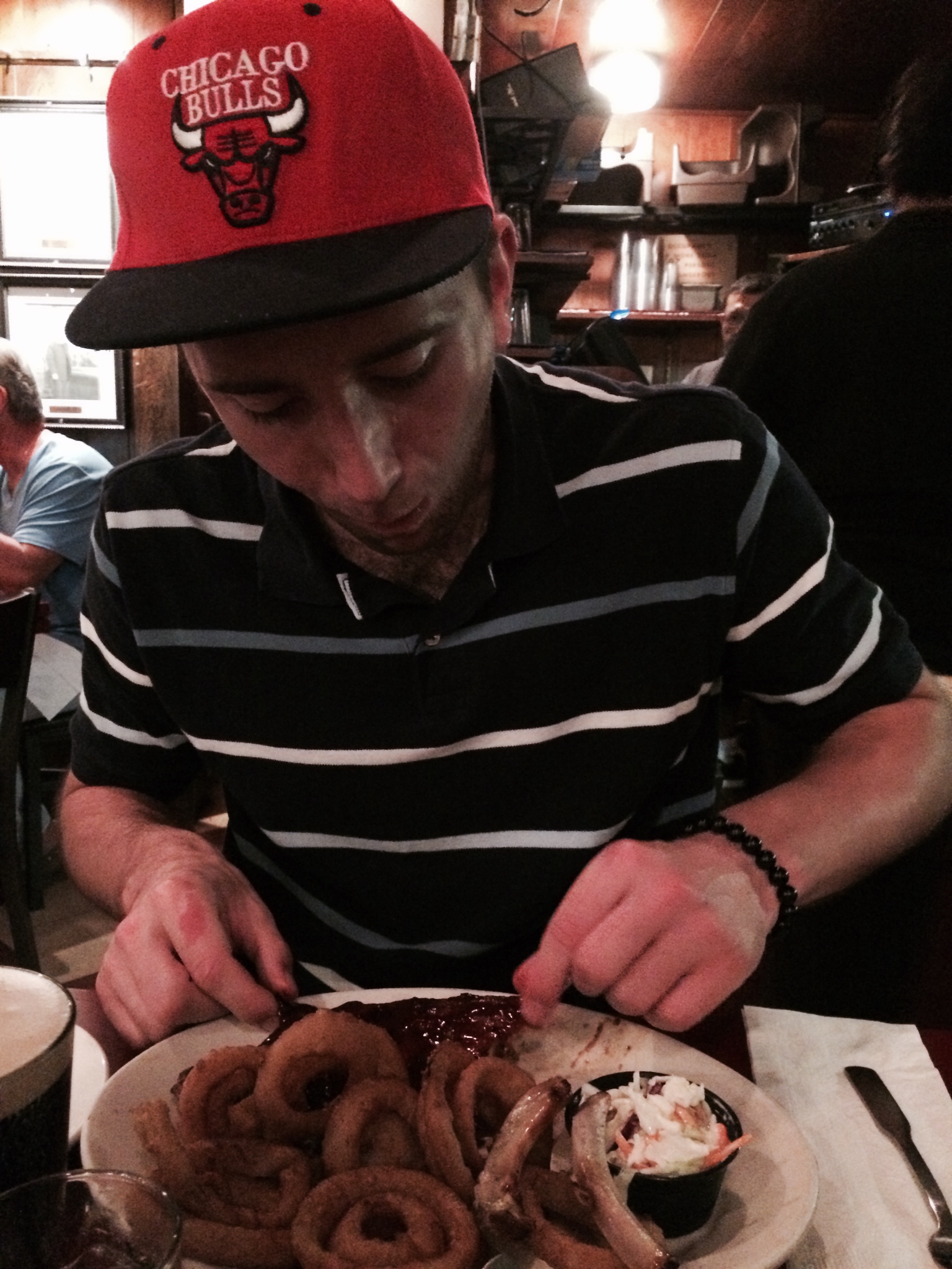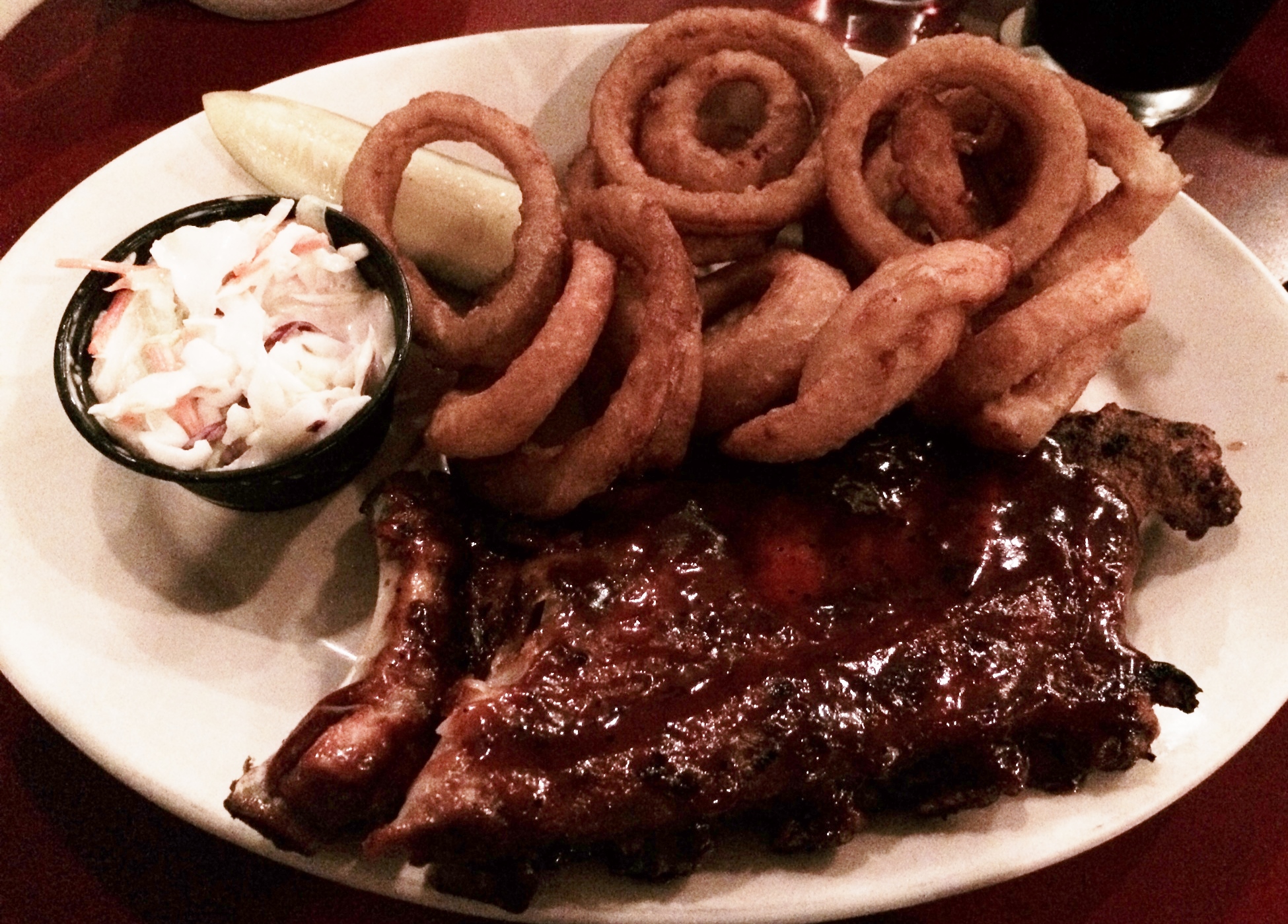 It was melt-in-your mouth tender, and the smoky flavor mixed perfectly with the slightly sweet mustard sauce. The creamed green beans were good but not great. However, I enjoyed the Hoppin’ John on the side. This southern staple has been around as long as African slaves have been in the USA, and the name is thought to have come from the possible corruption of the Haitian creole for pigeon peas or “pois pigeons” ([pwa pi jahns]). It was a scaled back version of the richer version that southerners serve on new year’s day with green elements like kale or peppers to symbolize luck and money. The rice was perfectly cooked with a bit of salt and pepper with plenty of black beans, and I would highly recommend mixing it with the pork. Janice was equally satisfied with her fried chicken.