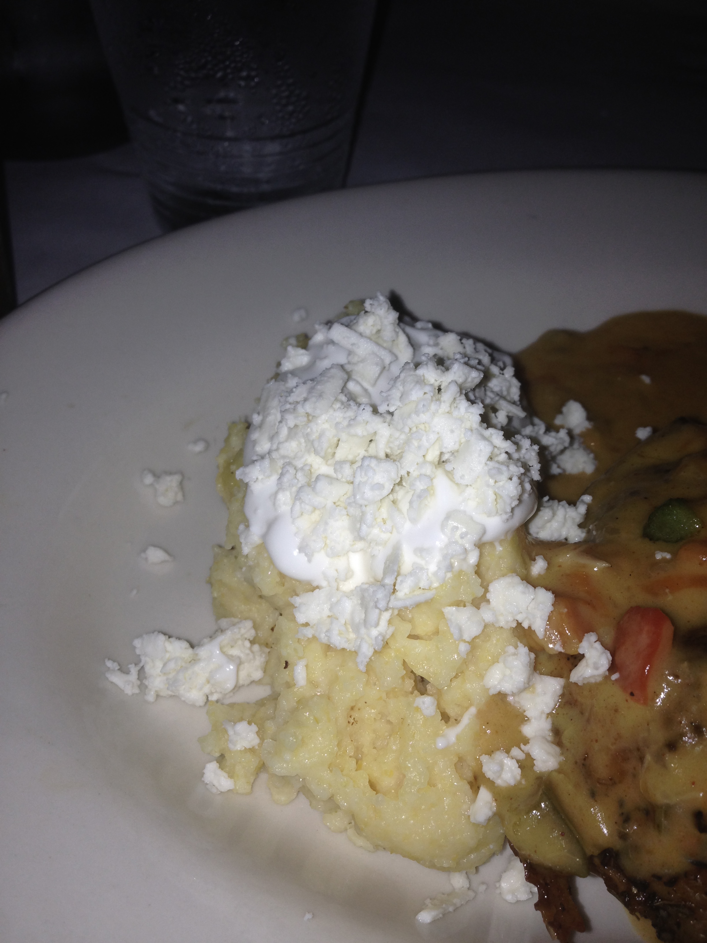 We shared it, but I don’t think it was worth it. True, the bread was warm, soft on the inside, and slightly crispy on the outside, but it was on the smaller end along with an extremely liberal coating of salt atop it. Not my style. However, my entree ended up being the Gaucho Burger ($13). It was simple but everything I enjoyed in a burger. The goat cheese was plentiful, and the chimichurri sauce on the side was the icing on this cake of beef.