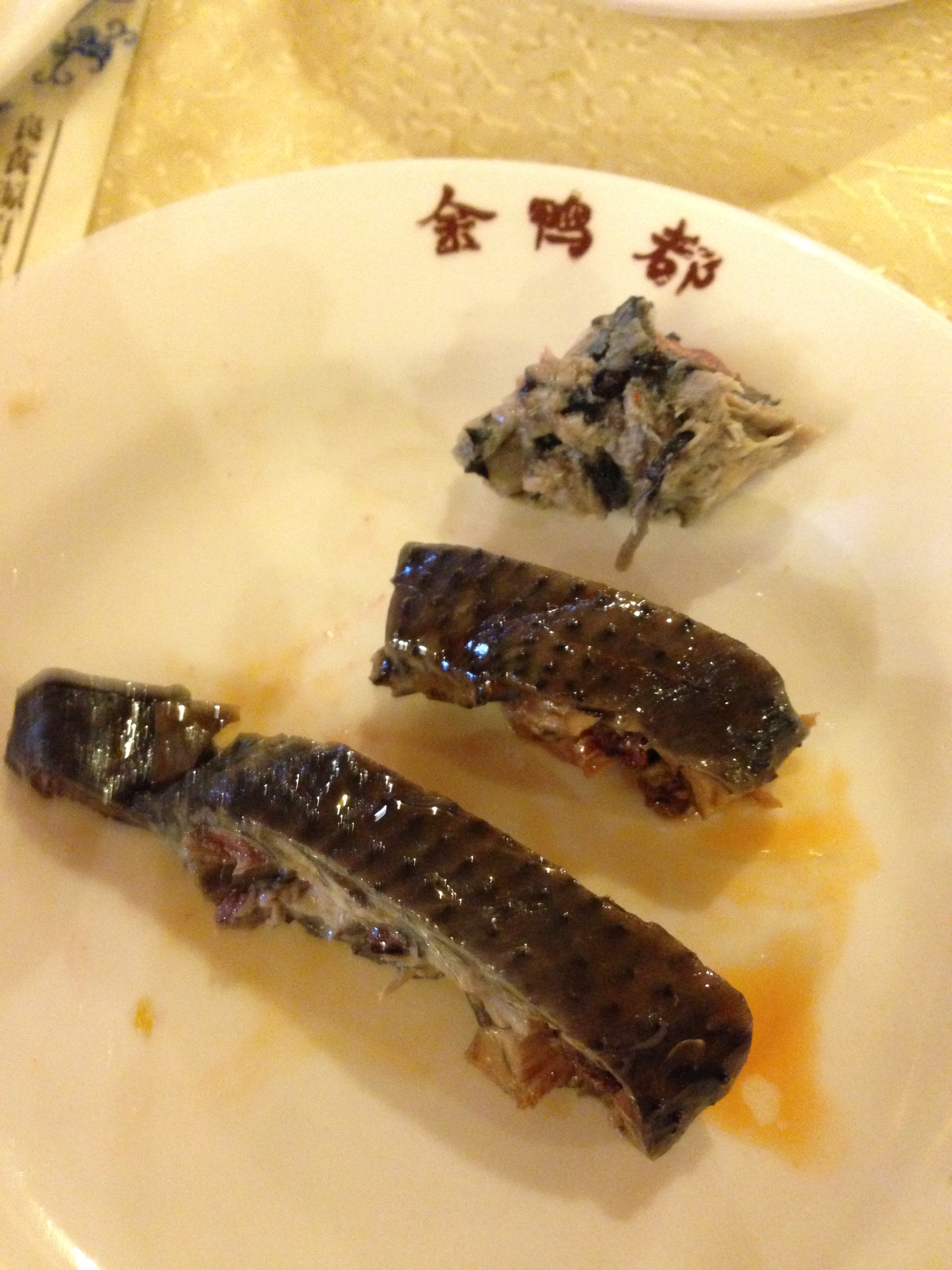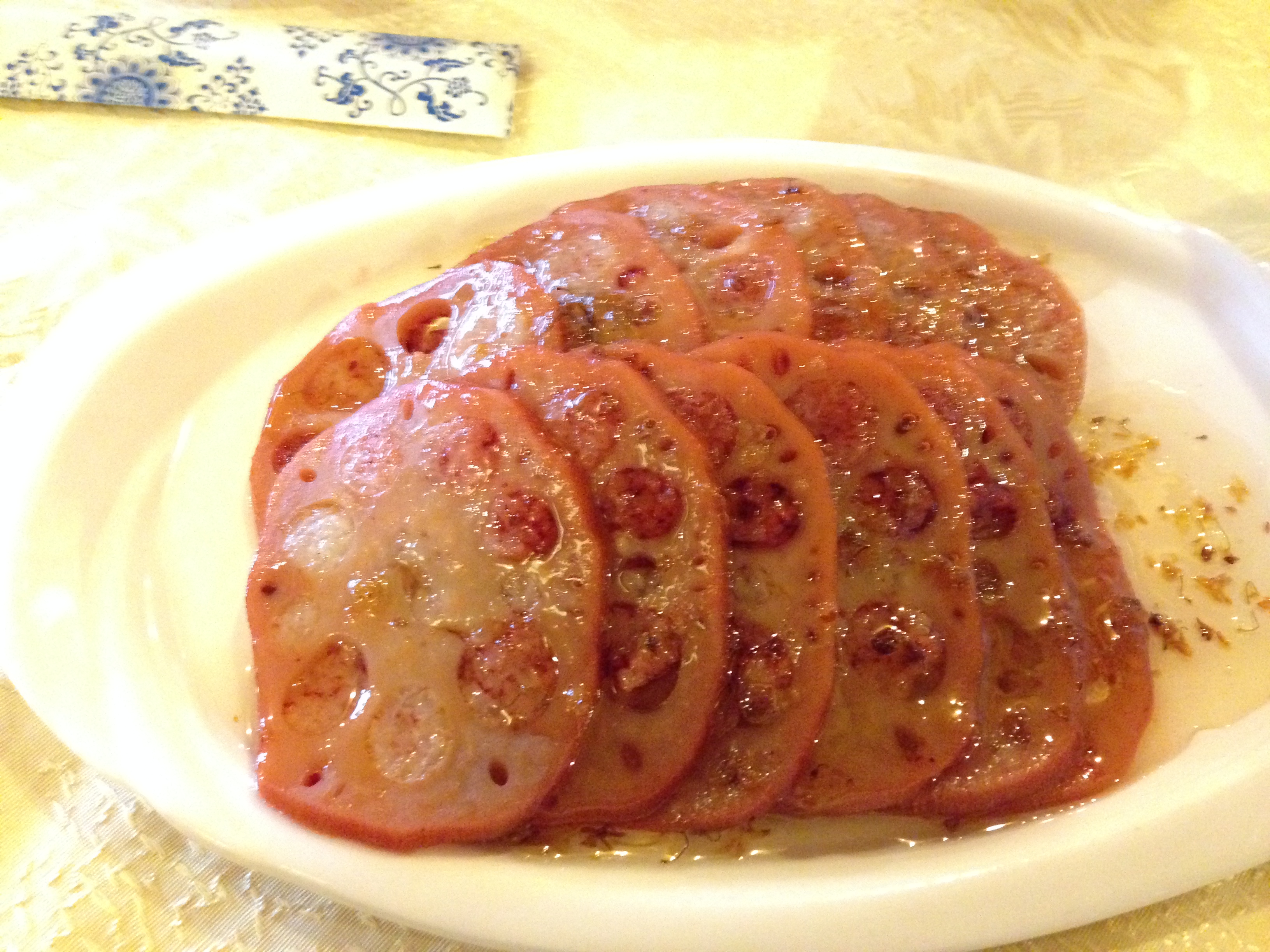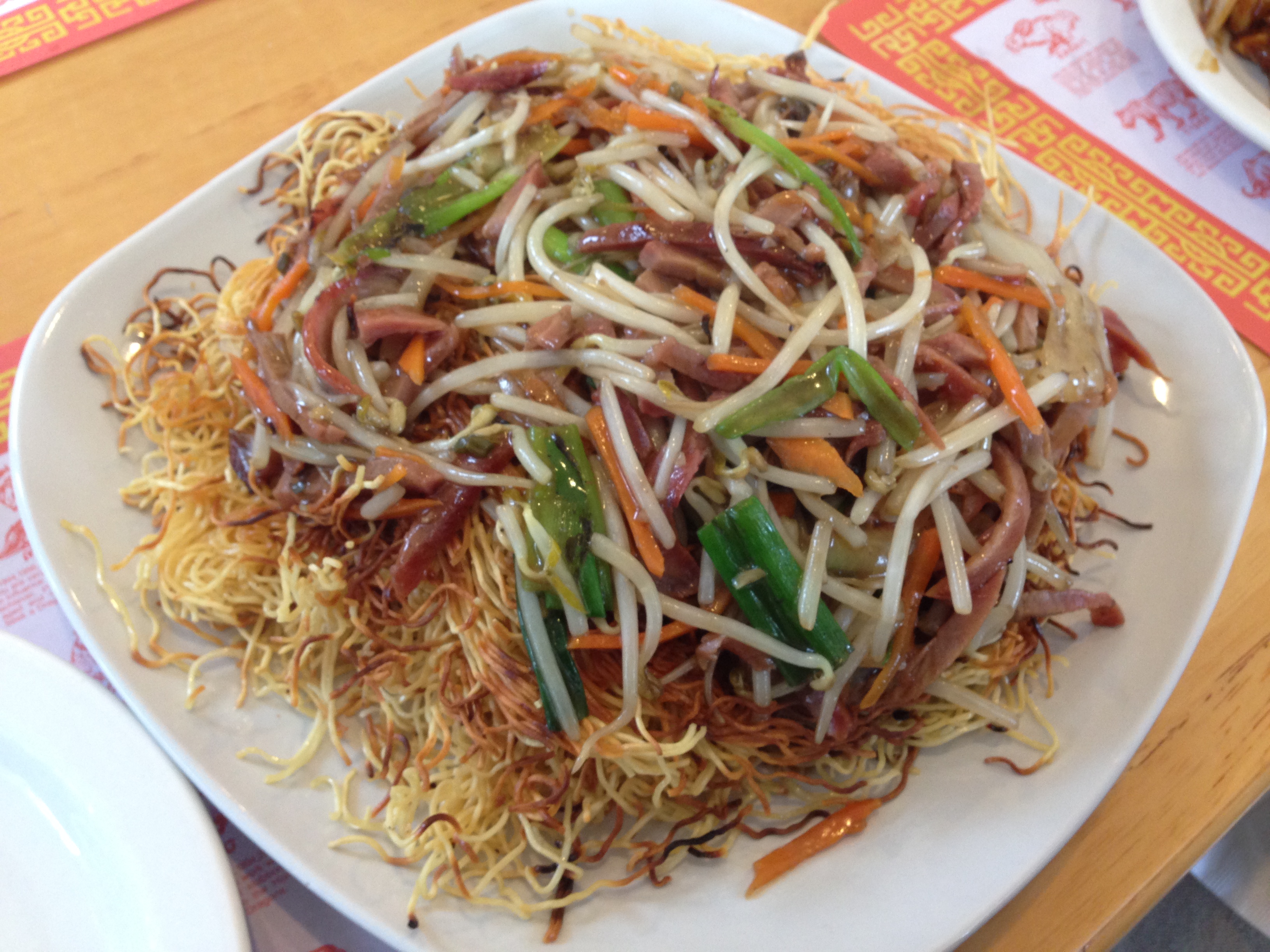 Chinese food has been around since the 1800s in the United States due to a high influx of Chinese immigrants to the West coast to build the railroads. Most of the workers came from southern regions of China, especially the town of Taisan (台山市), and brought with them food that had to be either adapted for their American customers or made as close to the real deal for their fellow Chinese immigrants without having all the necessary ingredients. Traditional Cantonese dishes do have some similarities to the modern day orange chickens and chop suey, but most mainland Chinese view American Chinese food as foreign food that their favorite tv characters eat out of white take-out boxes. Instead of heavily-sauced meat dishes, we started with char siu bao or pork buns. We got the baked version (叉燒餐包) which was different from the steamed type often served at many dim sum restaurants in Chinatown.