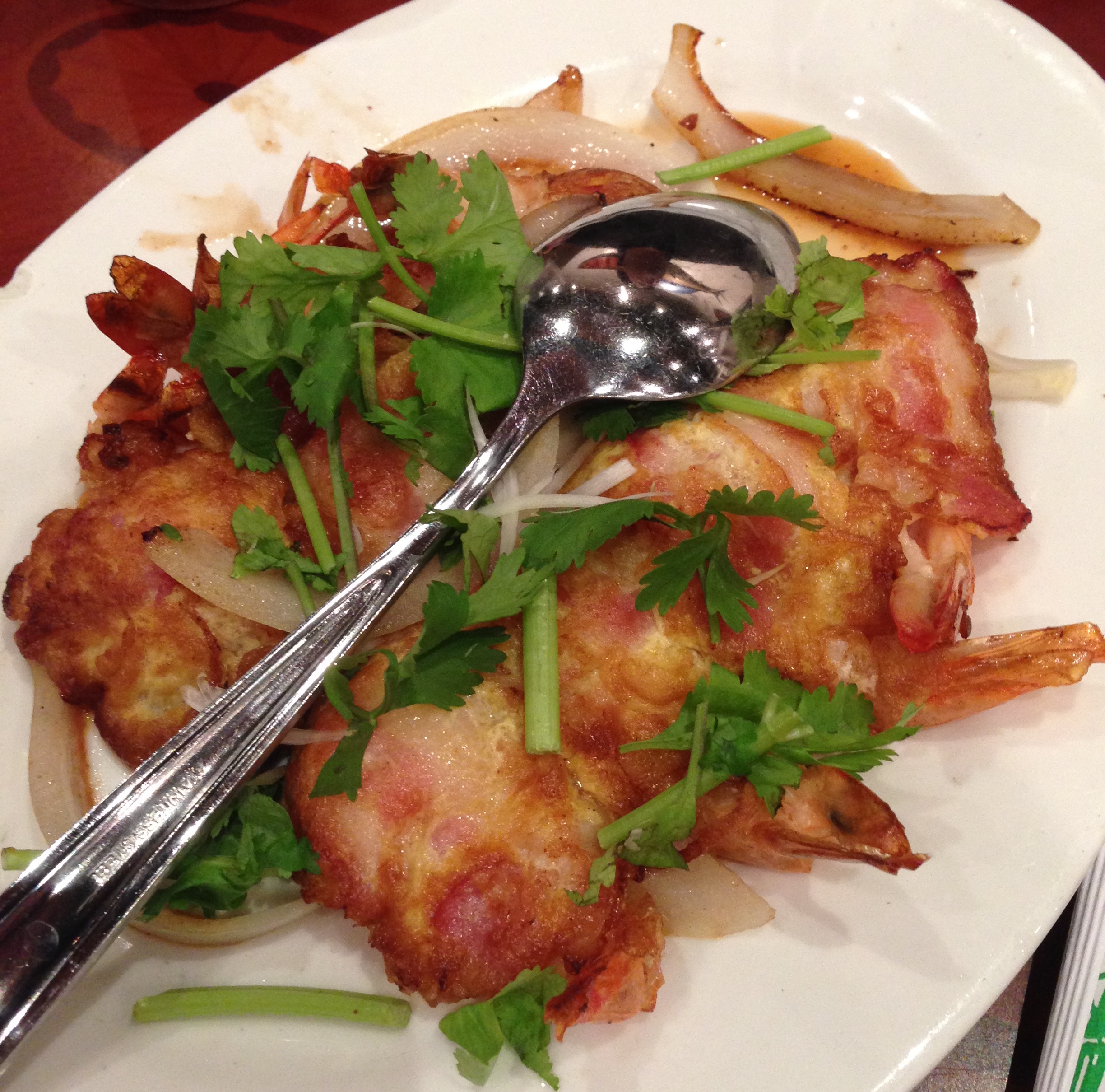 I personally wasn’t wowed with these thicker, somewhat crispy noodles that were canoodling with shrimp, goat sausage, bean sprouts, and a strange red vegetable we couldn’t identify. My theory was that they were cooked tomatoes. Joe and Janice preferred it more than I did, but I think my preference for thinner or crispier noodles may have clouded my perceptions. Noodle-wise, I was definitely feeling the chilly chili noodles.