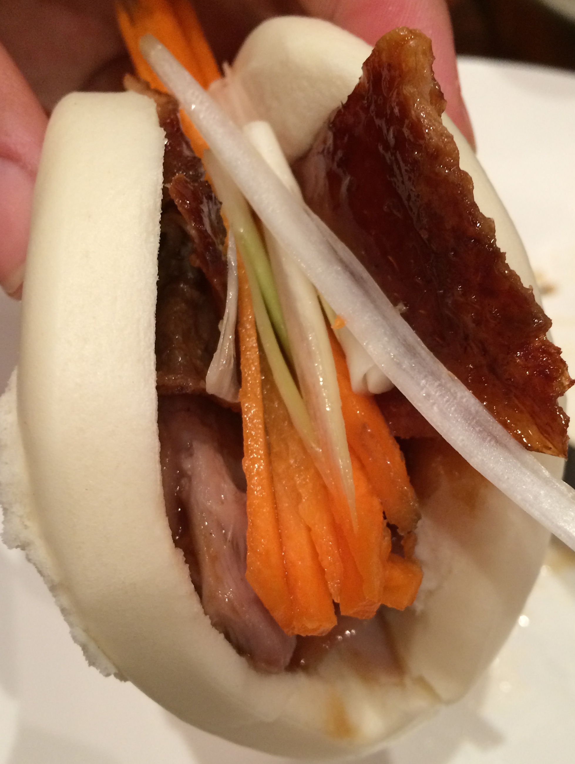 They were also more multi-layered in terms of flavor compared to the char siu bao or the next choice in our feast. Following these dumplings, we got, surprise surprise, xiao long bao (小籠包) or soup buns. These unique dumplings were invented in Shanghai but quickly spread throughout China. The ones served at Duck Duck Goat were served in the southern Chinese style with translucent skin and filled with traditional pork, crab, and broth.