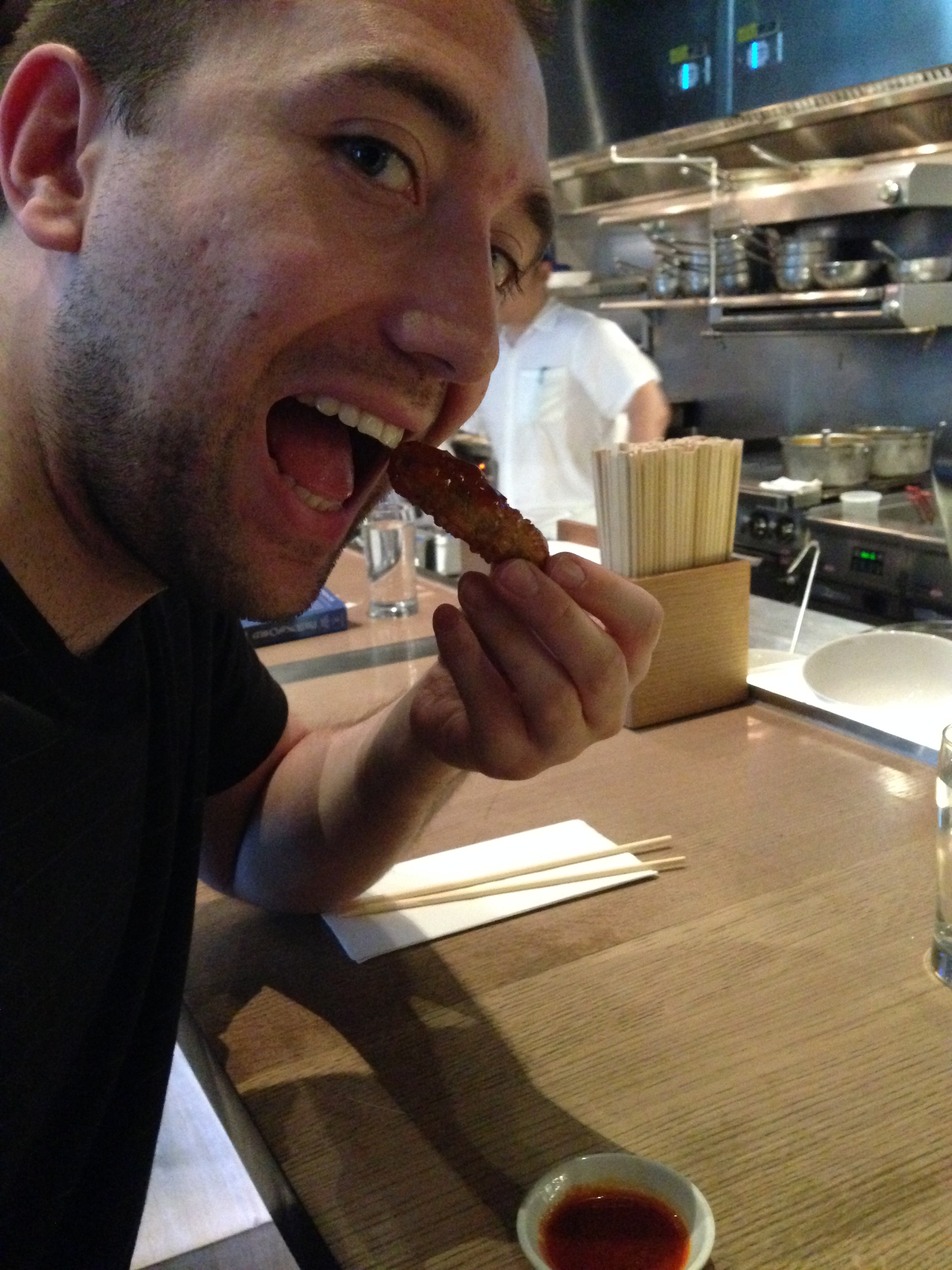 These were new to me, and I typically would avoid rice cake due to my experiences in Korea. However, the crunchy, fried exterior gave way to a chewy interior that was stuffed with seasoned goat. I would preferred it if it was served with a hoisin or spicy sauce to make this dish really pop, but Iron Chef Izard knows what’s best. Transitioning from more tame dumplings, we went full throttle into more traditional Chinese fare that could drive more squeamish diners away: duck hearts. I had previously eaten parts of a duck I never thought I would when hosted by my friend David’s family in Taipei (非常谢谢!), but this is another part that I ended up loving. Izard nailed the dish by roasting them until they had a good char and served them halved on a puddle of mild sesame-horseradish sauce.