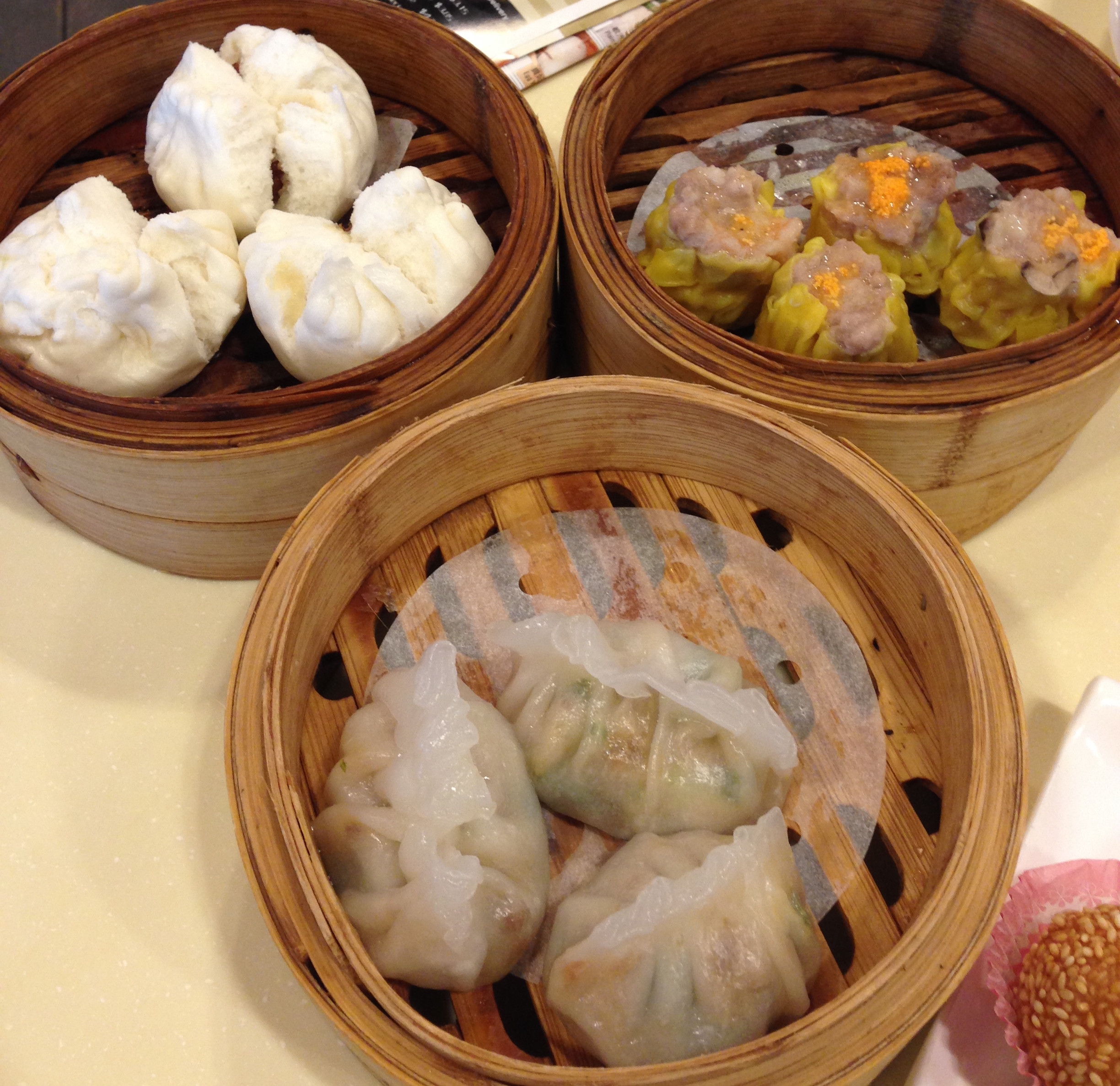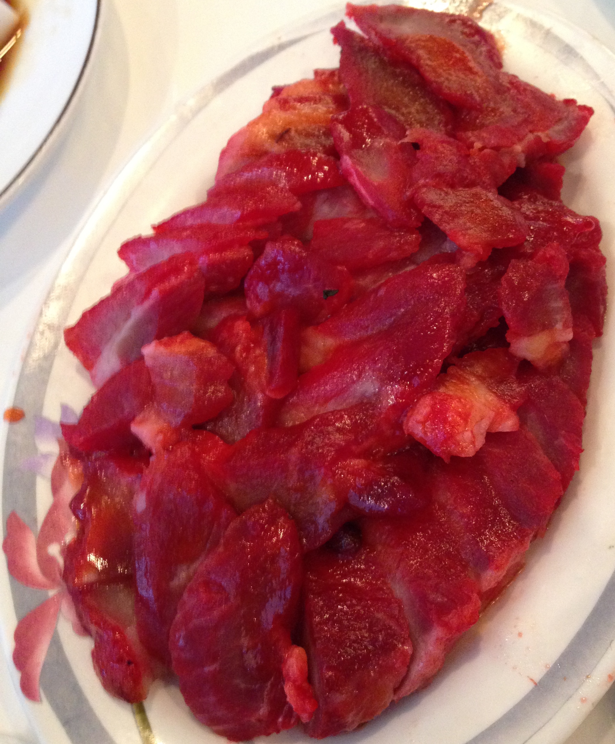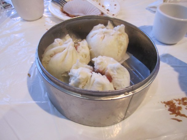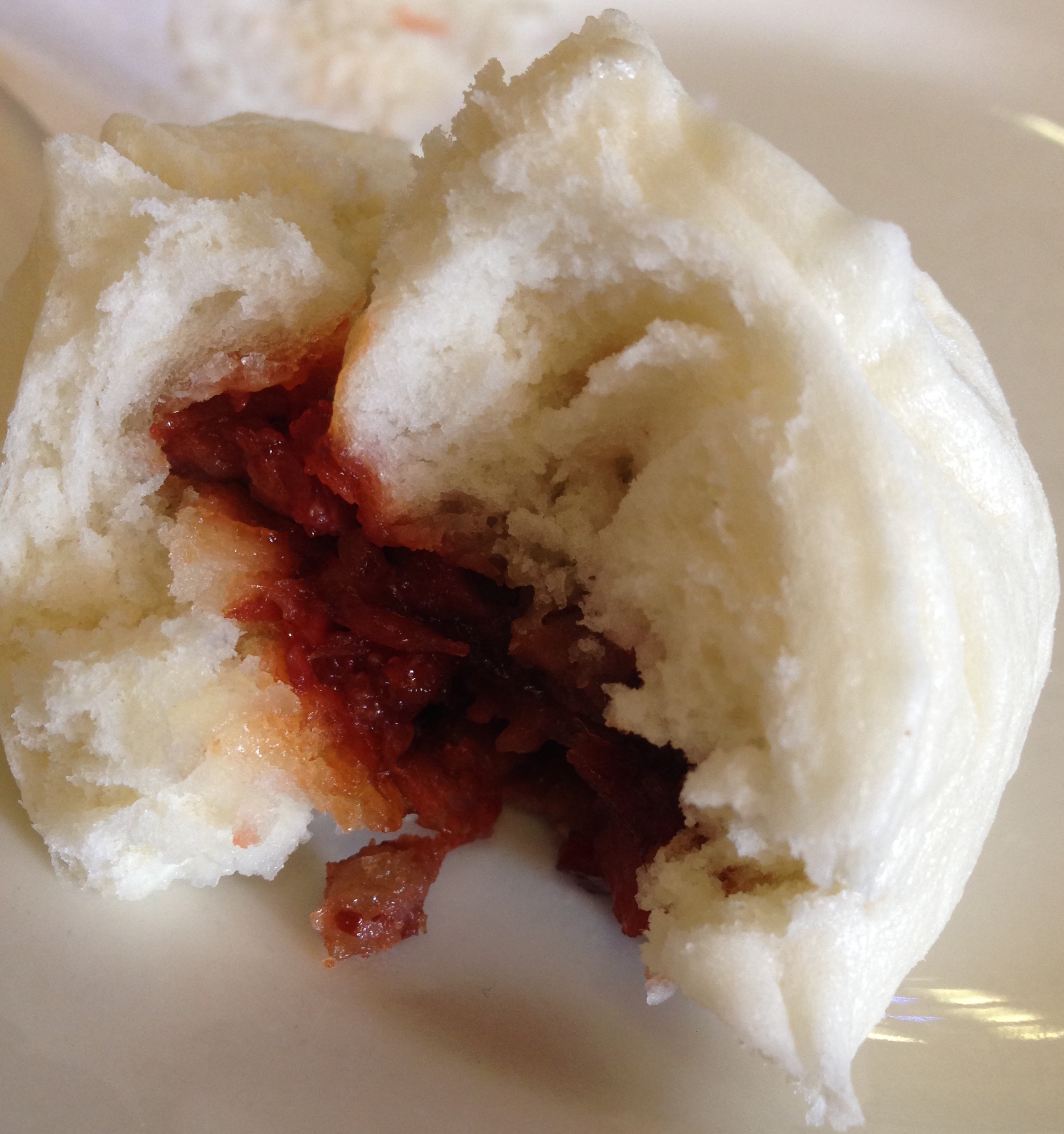 Chinese food has been around since the 1800s in the United States due to a high influx of Chinese immigrants to the West coast to build the railroads. Most of the workers came from southern regions of China, especially the town of Taisan (台山市), and brought with them food that had to be either adapted for their American customers or made as close to the real deal for their fellow Chinese immigrants without having all the necessary ingredients. Traditional Cantonese dishes do have some similarities to the modern day orange chickens and chop suey, but most mainland Chinese view American Chinese food as foreign food that their favorite tv characters eat out of white take-out boxes. Instead of heavily-sauced meat dishes, we started with char siu bao or pork buns. We got the baked version (叉燒餐包) which was different from the steamed type often served at many dim sum restaurants in Chinatown.