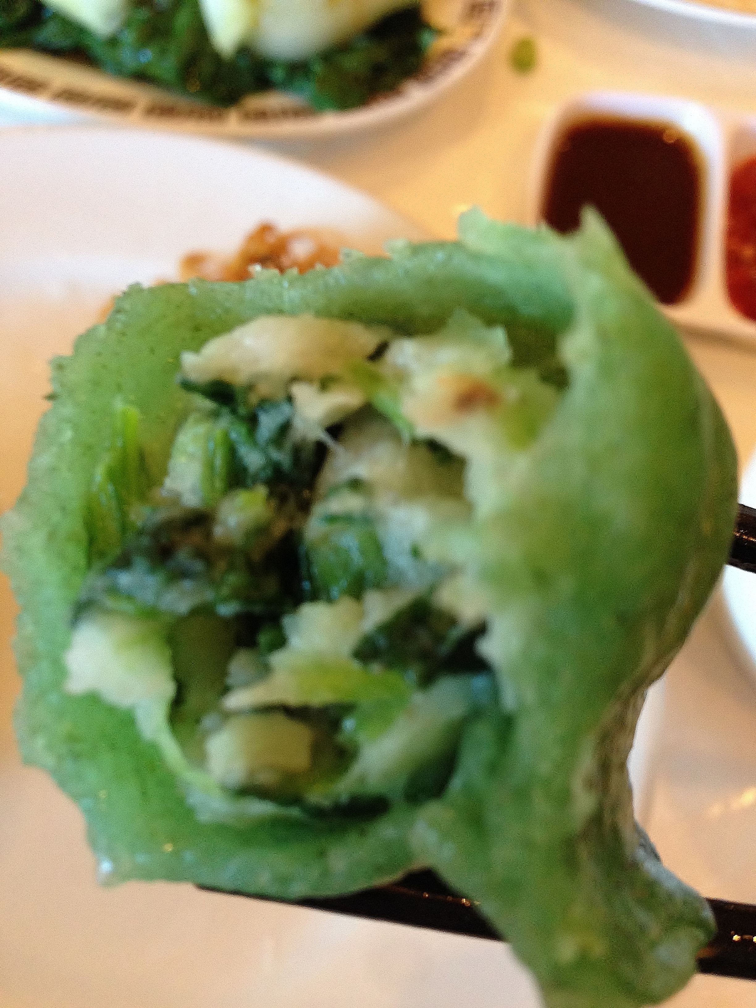 The dough was amazing. Soft and topped with green scallions, but the filling was kind of disappointing. I was expecting the red, sweet minced pork in all previous char siu dishes I’ve tried, but instead it was more like shreddednpork with little seasoning. I would still recommend trying them for the dough alone. Next up, the extremely lightly pan-fried jiaozi ( 鍋貼).
