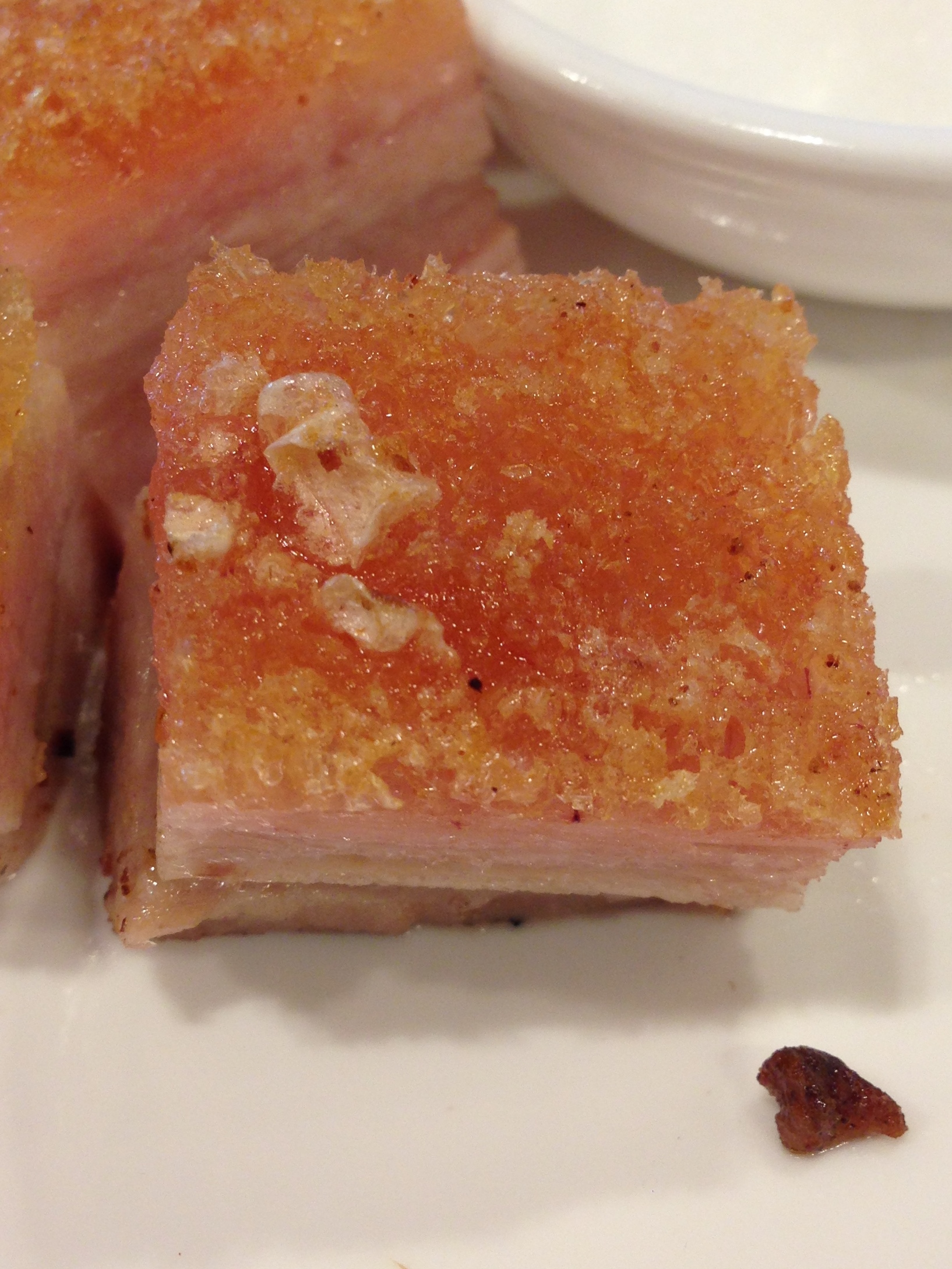 These were new to me, and I typically would avoid rice cake due to my experiences in Korea. However, the crunchy, fried exterior gave way to a chewy interior that was stuffed with seasoned goat. I would preferred it if it was served with a hoisin or spicy sauce to make this dish really pop, but Iron Chef Izard knows what’s best. Transitioning from more tame dumplings, we went full throttle into more traditional Chinese fare that could drive more squeamish diners away: duck hearts. I had previously eaten parts of a duck I never thought I would when hosted by my friend David’s family in Taipei (非常谢谢!), but this is another part that I ended up loving. Izard nailed the dish by roasting them until they had a good char and served them halved on a puddle of mild sesame-horseradish sauce.
