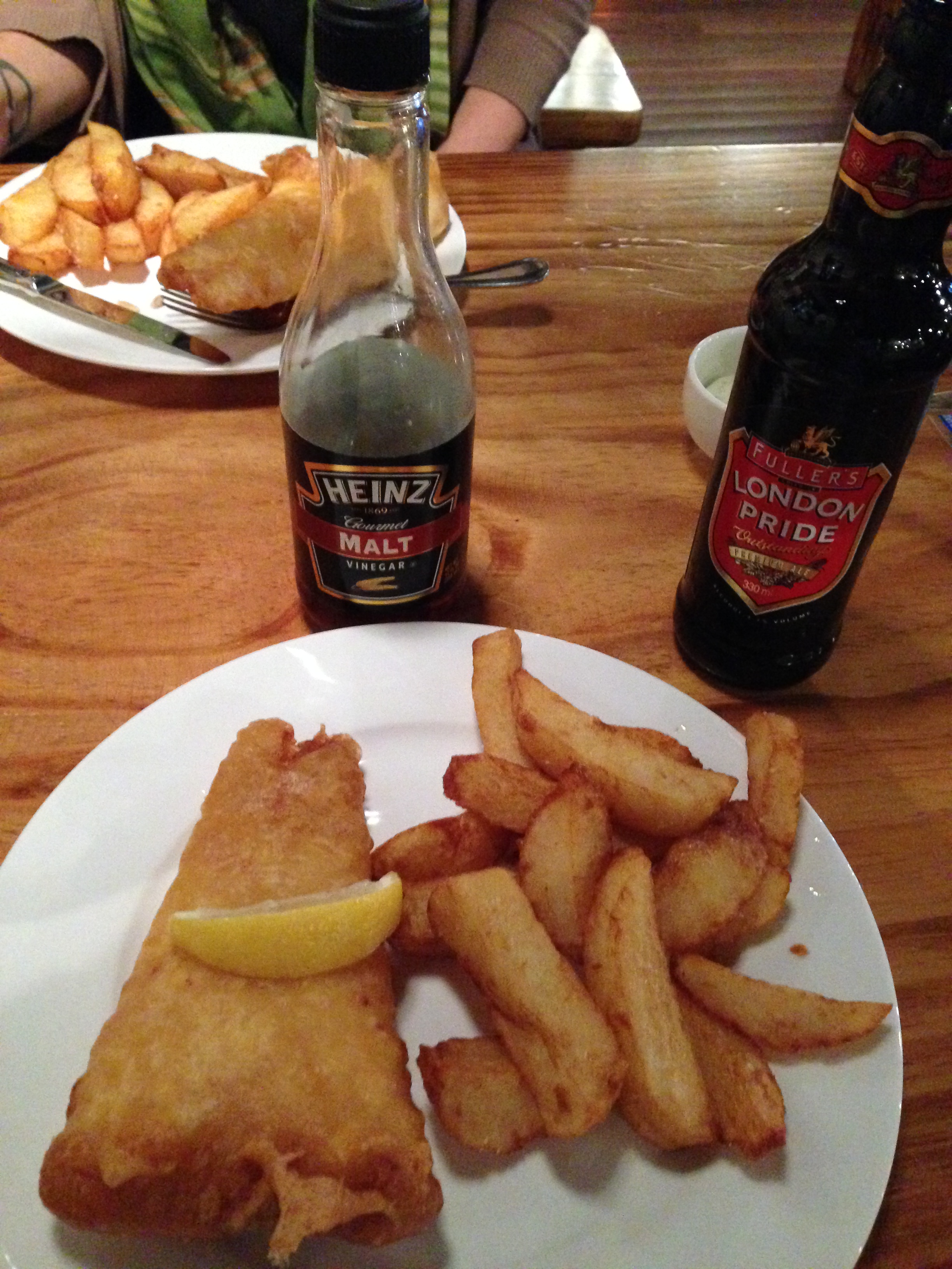 Looking at the prices, it was average prices for foreign fare in Korea. I got the battered cod and chips (or French fries for Amurkans) for 11,000 W. I also threw caution to the wind and got a London Pride for 11,000 W which naturally jacked up for being an import. They also have chicken wings, sausage and chips, and various sides if fish isn’t your bag. The beer came out first, and as I expected it was a slightly hearty brown ale like many English beers.