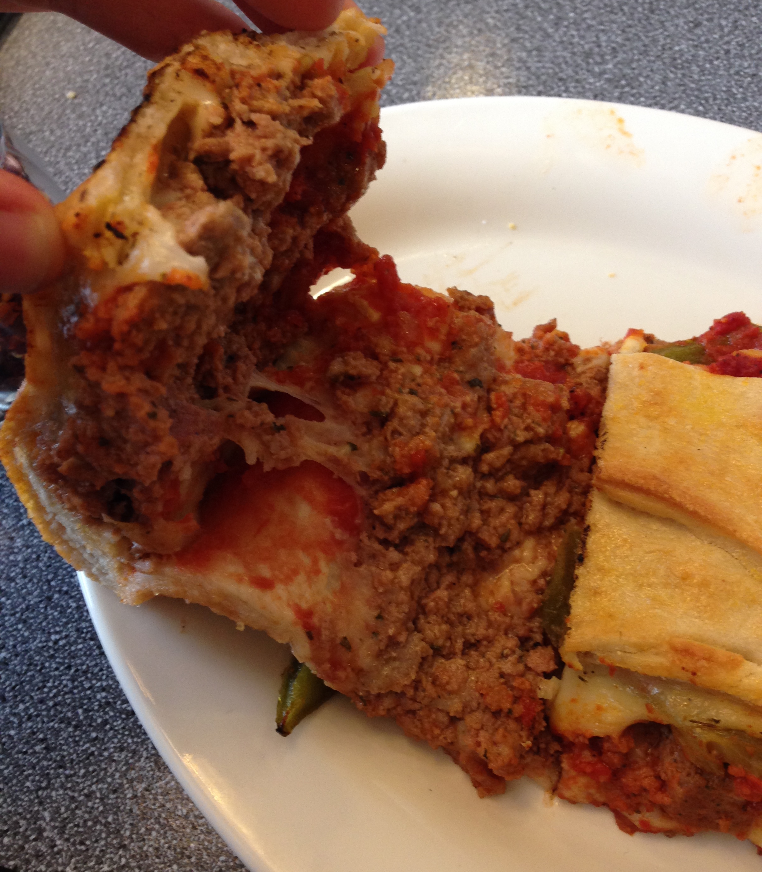 While the crust was crusty yet chewy, it was soggy on the bottom which is never a good attribute for pizza to have. As for the interior, the Beef Angelo normally is filled with slices of juicy beef, but what I found was more like the leftover, ground up meatballs.