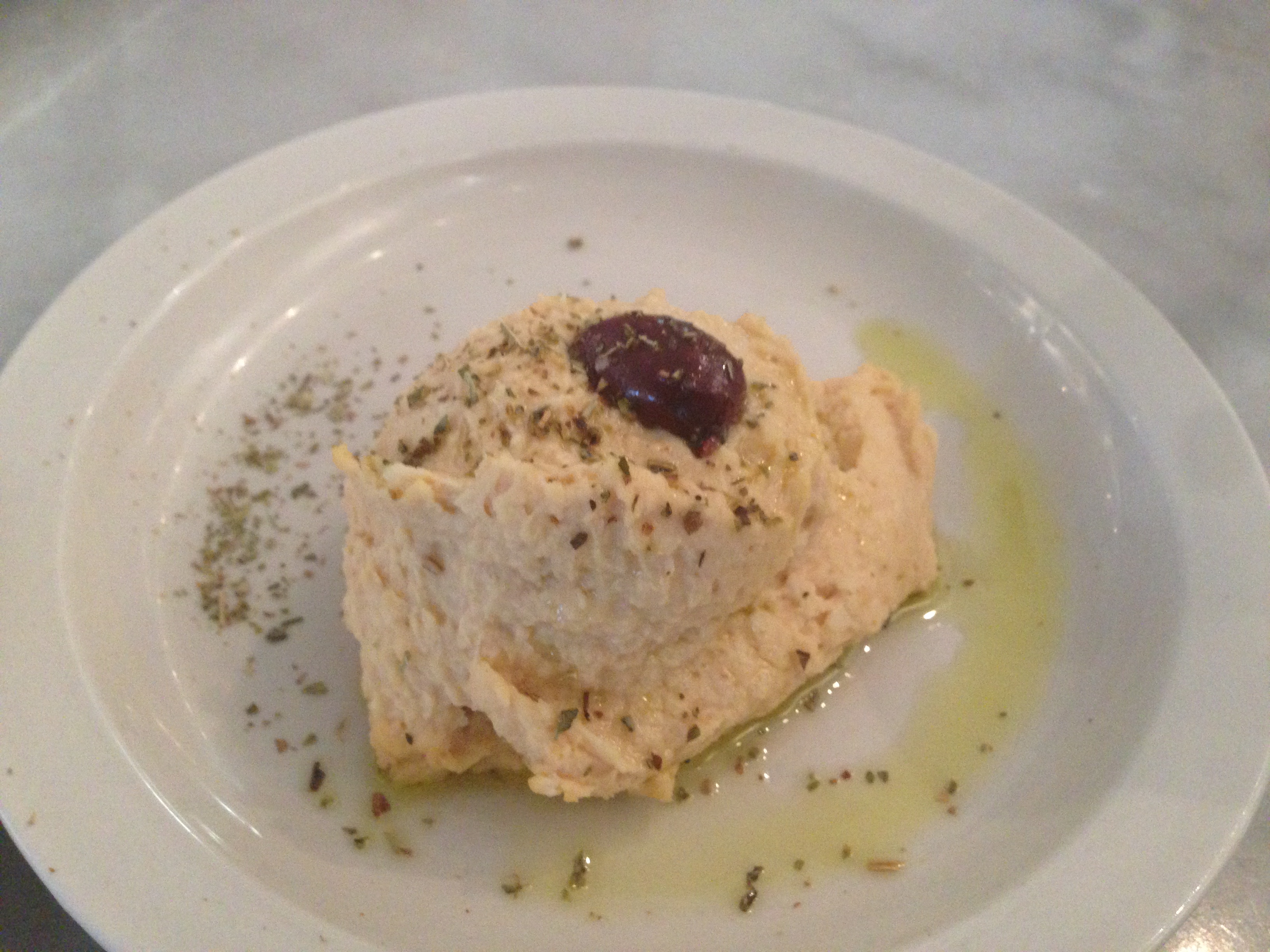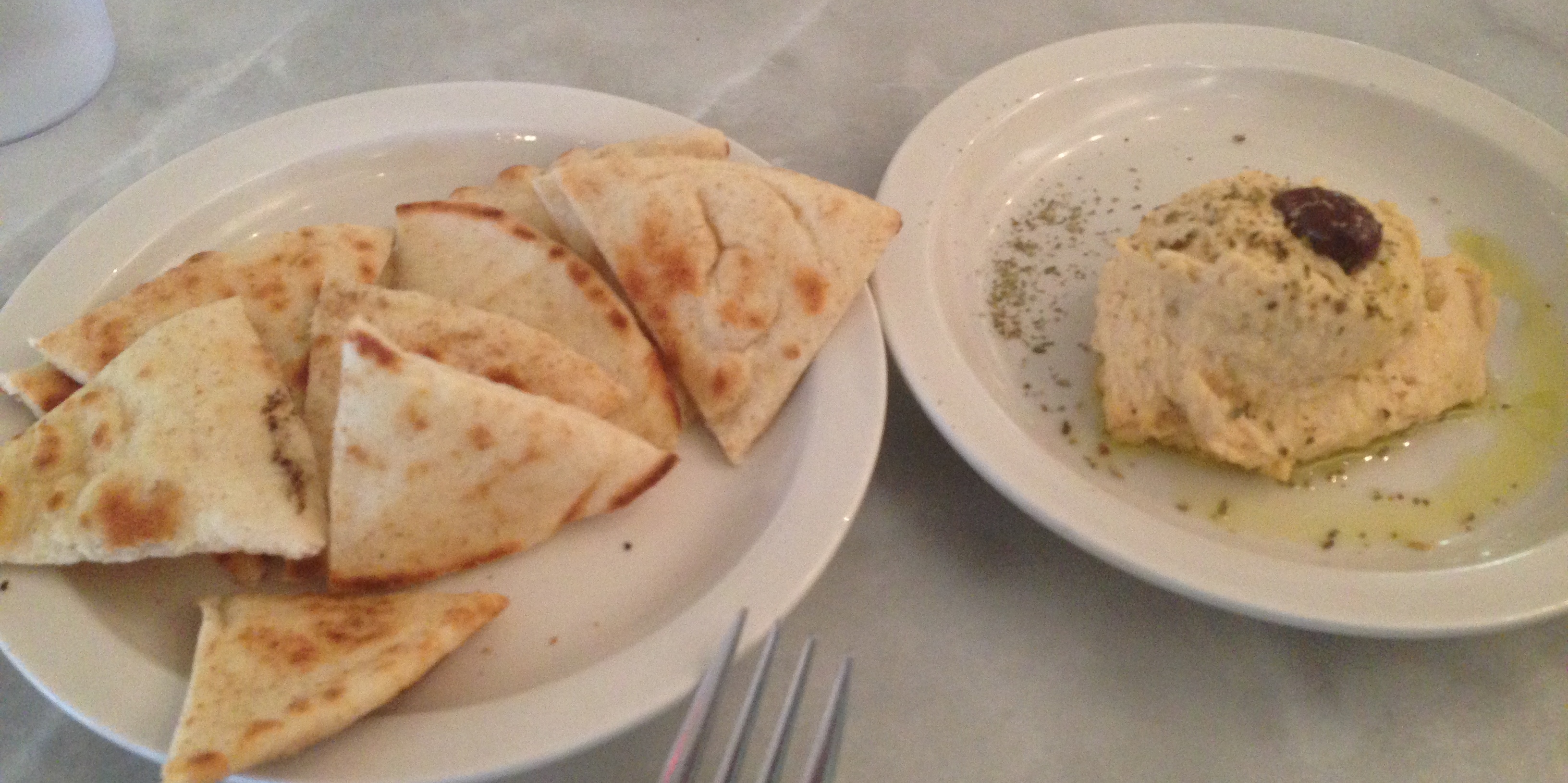 The pita was warm and fresh, and the hummus was creamy and evenly spiced with a liberal splash of olive oil.