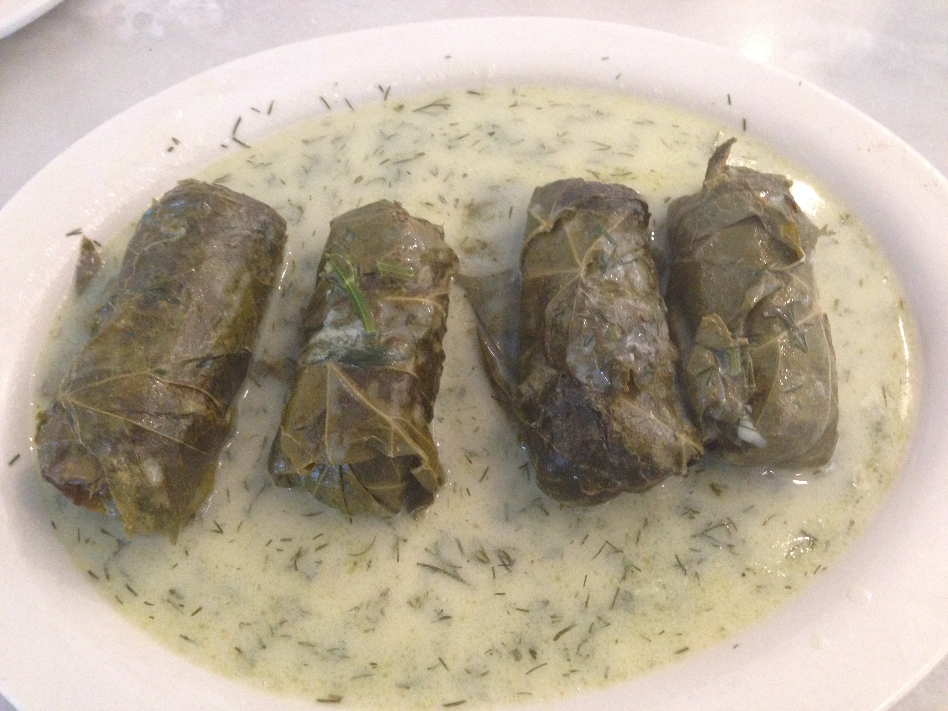 The dolmathakia consisted of cooked grape leaves that encased fluffy grains of rice with spices and just the right amount of dill that was further enhanced by the translucent dill broth that these mini-grape loves were stewing in.