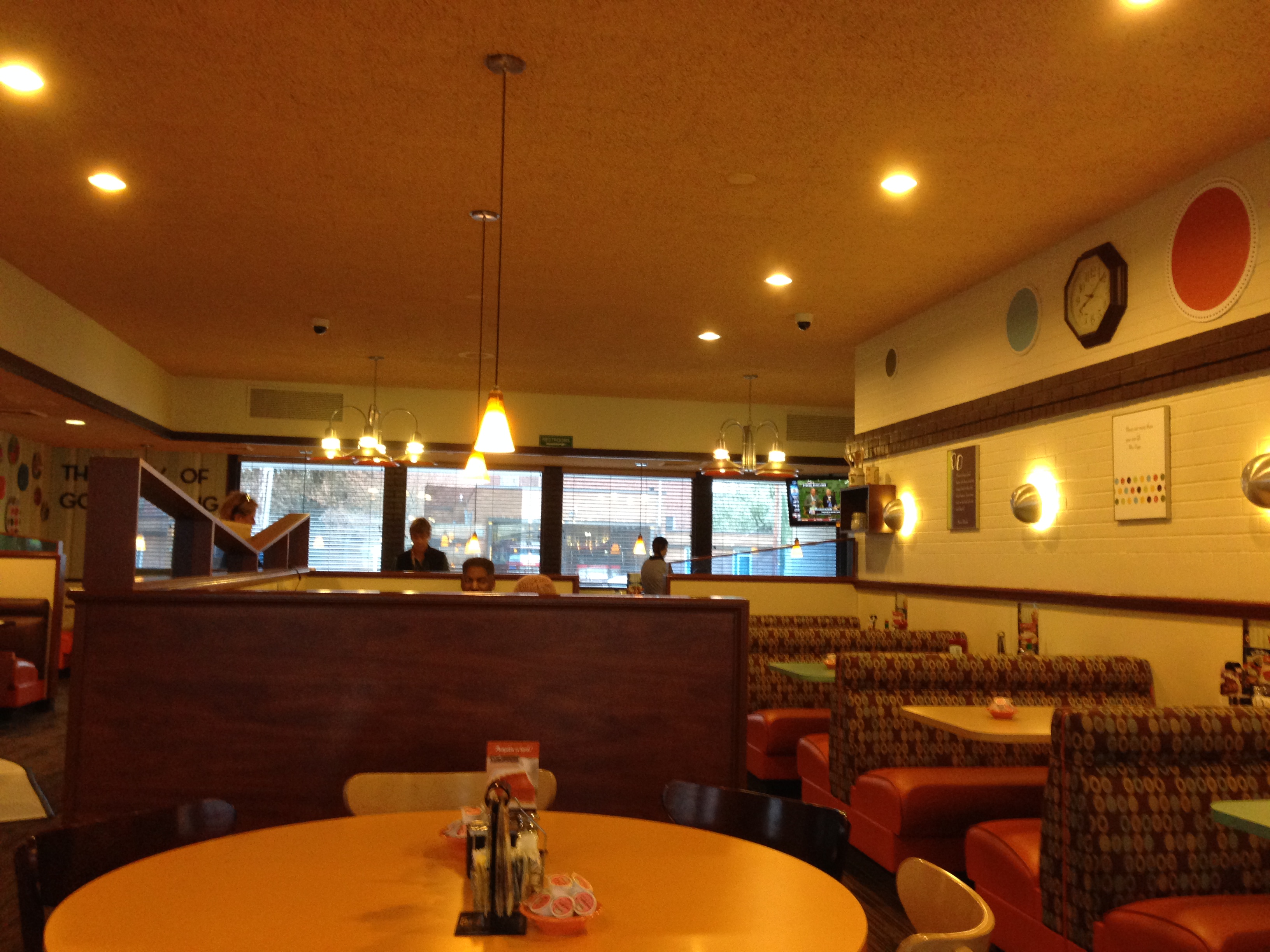 It seemed like a local place based on its location away from the heart of the downtown along with its general appearance as a greasy spoon diner. I made a mental note of it and returned that Thursday morning. It was another dreary gray and drizzly day, but my formal attire seemed to catch the staff off guard as I entered, valise in hand. It looked like the average age in the place was 60, but I didn’t mind how empty it was at 8 a.m. As I surveyed the menu, it seemed that this was a chain of sorts that smacked of the larger Denny’s corporation in regard to the general interior decor and menu boasting breakfast, lunch, and dinner entrees at all hours.