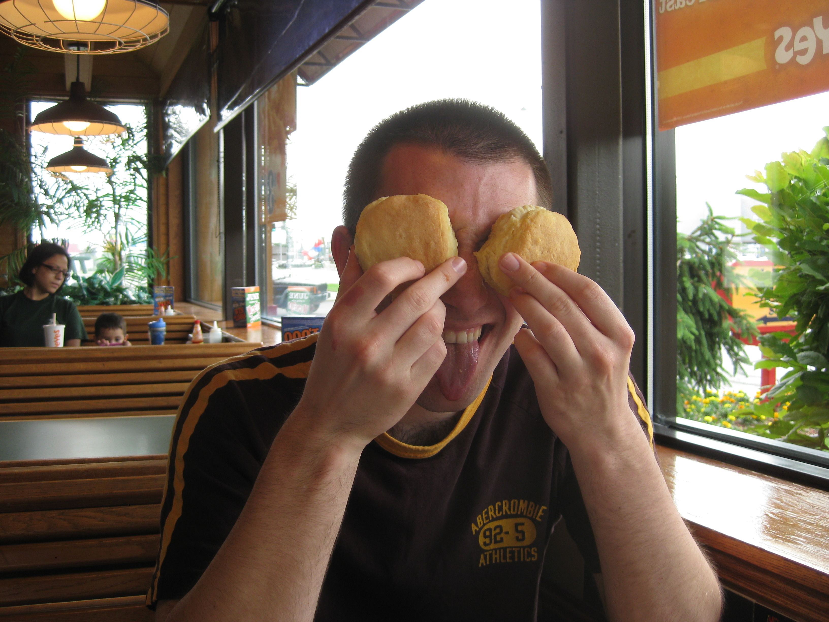 However, I always manage to douse these strips with some good ol’ fashioned Louisiana Hot Sauce that is in ample supply on the table in bottles. Even though there are some people who complain that after eating fried chicken they have an unsavory “stuffed with grease” feeling, I can assure you that Popeye’s chicken is fried lightly enough to not turn off even the most finicky eater. The preparation is a world away from the Cass Avenue location where even their freshest chicken seems a day old in terms of succulence and overall flavor/aroma, and their breading seems as mediocre as the service. Not only that, but they also only give out hot sauce in packets…this isn’t Taco Bell, people. Anyway, moving on to the sweeter part of my meal: the biscuits!