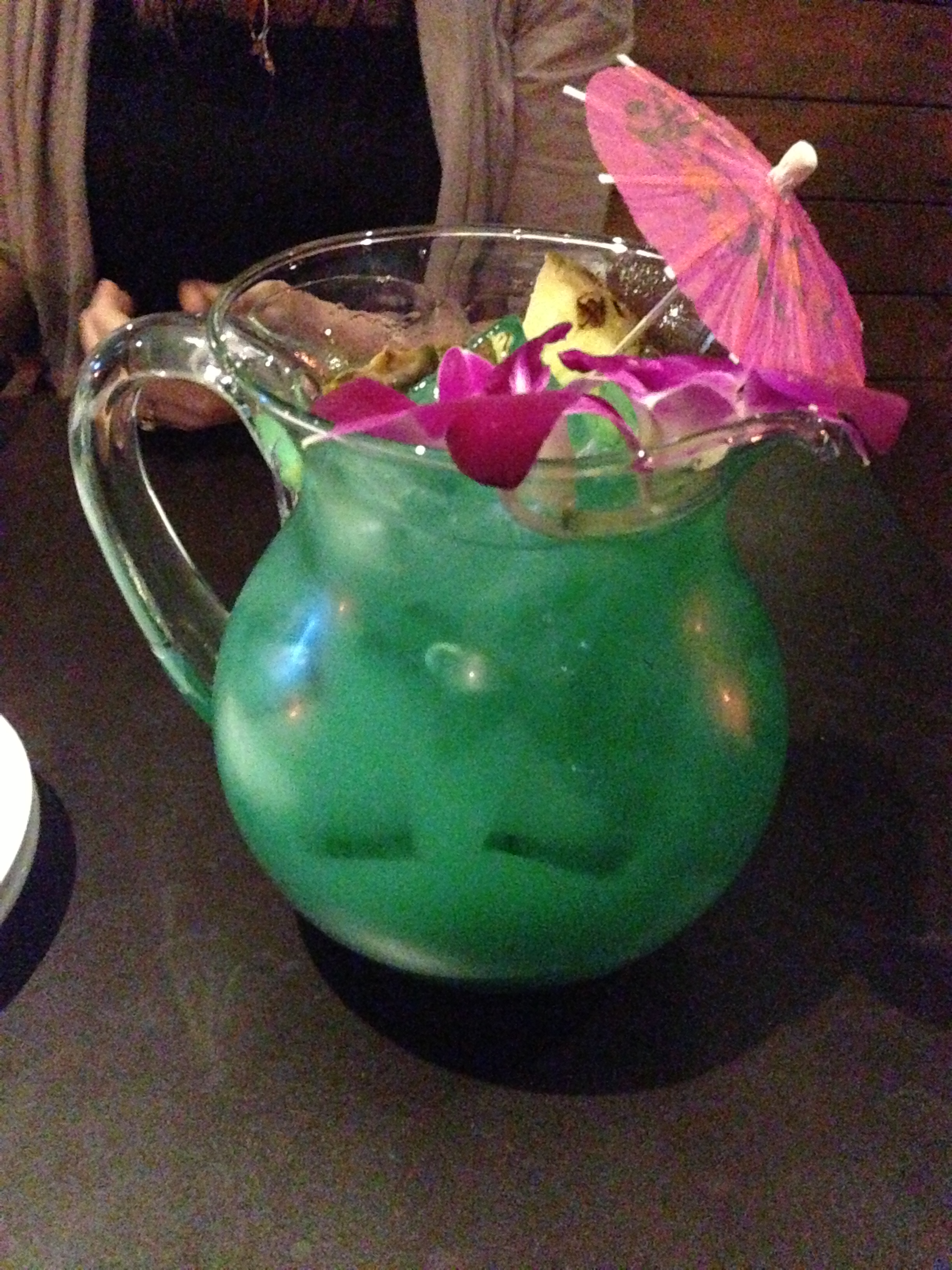 The smell alone was worth the price of admission. There were mostly Koreans there, and when I saw the menu, we could see they adjusted their prices for that reason since Koreans love to spend money on expensive food. That and some of the ingredients are hard to get in Korea. However, I was highly suspicious of the menu when they had pho on it, but no Hawaiian staples like Spam and poi. They had different types of grilled meats (chicken, steak) along with burgers and salads. Either way, I was starving and planned on making the most of my adventure. I started with a pitcher of Blue Hawaii (30,000 W) which made sense economically since the average price of a drink was 9,000 W