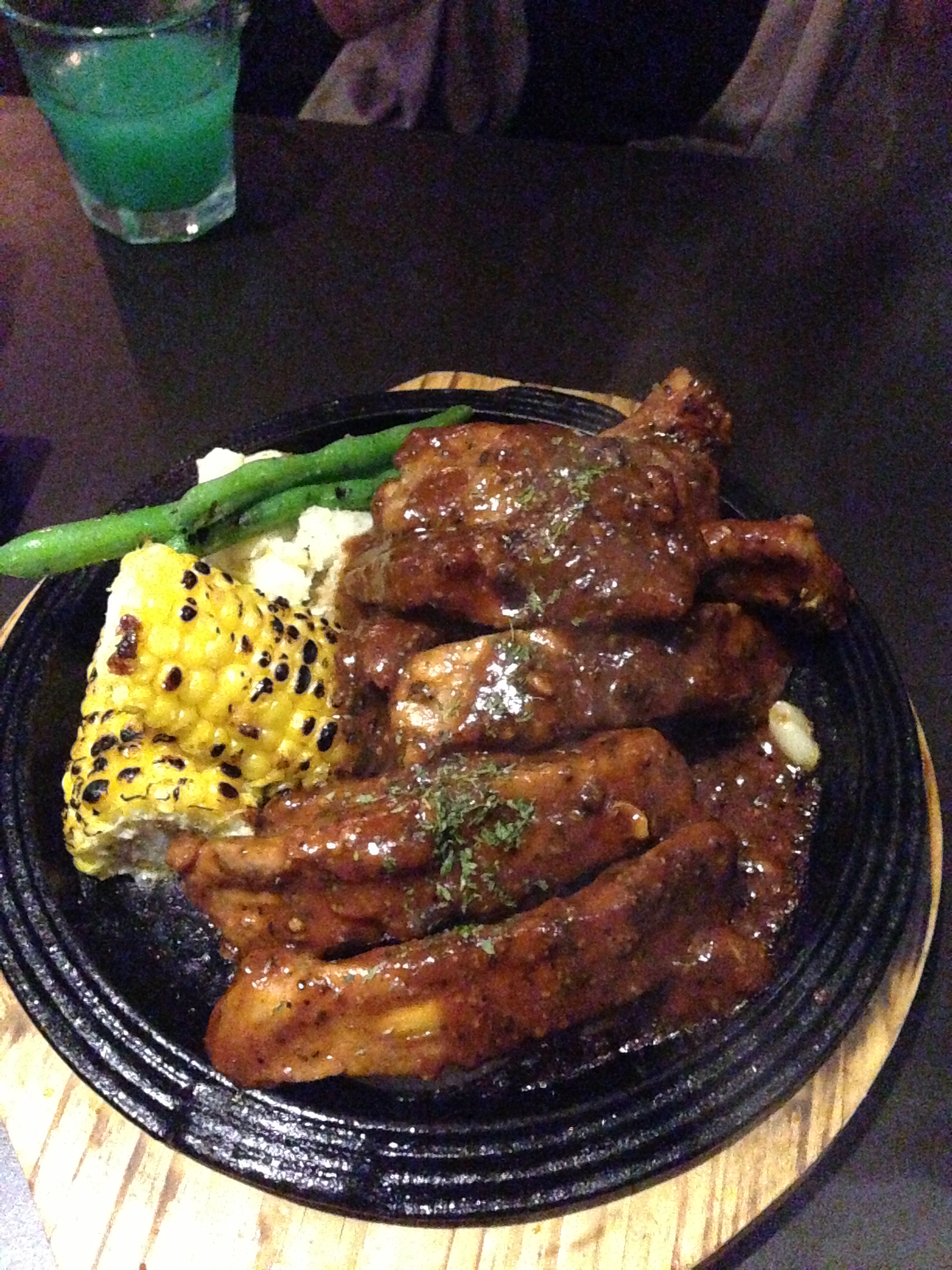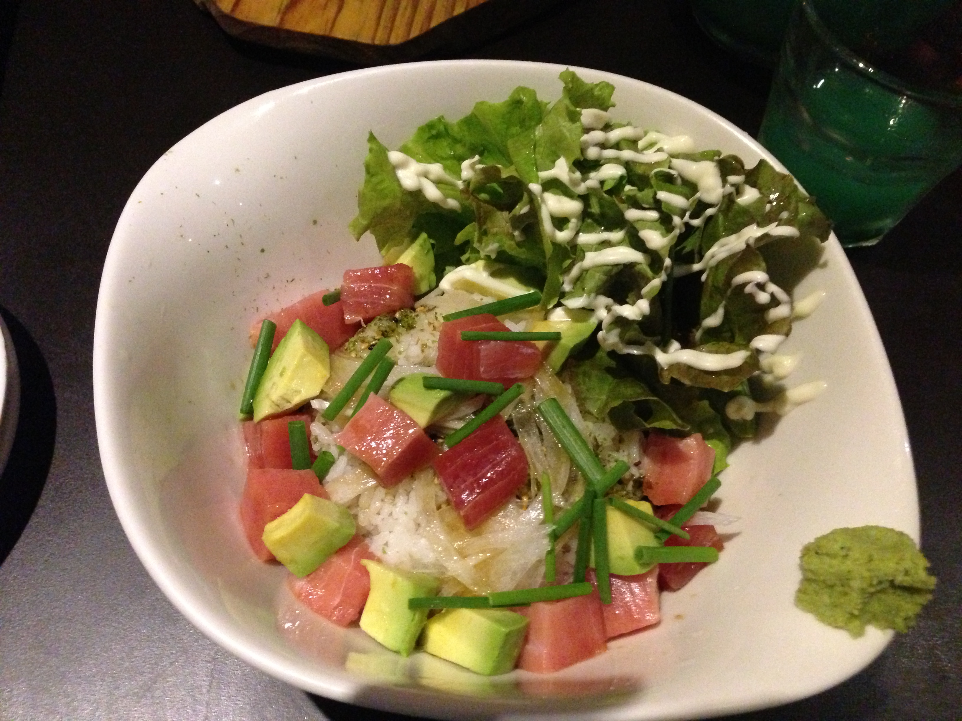 Not only did it have tender pink pieces of tuna, but the avocado, sprigs of green onion, and wasabi all mixed together within the fresh white rice to create a light yet satisfying dinner. The lettuce on top was like a mini salad since it was drizzled with a ranch-esque dressing that didn’t quite possess the same spices like ranch dressing back home. It was the opposite to the hulking plate of ribs.