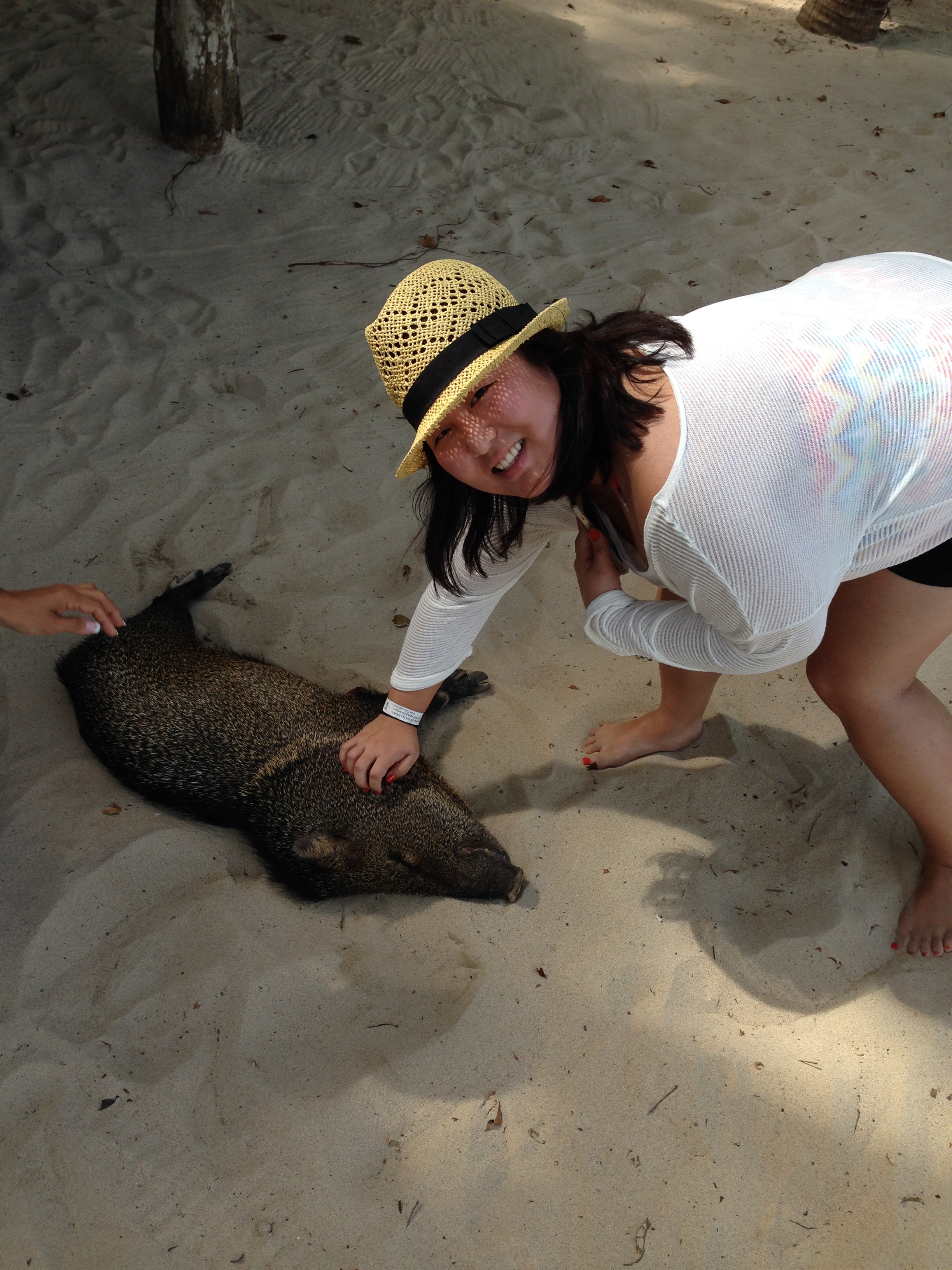 Anyway, day two kicked off with a classic Costa Rican breakfast that is a little bit different than the ol’ eggs, bacon, and pancakes as big as your face back in ‘Murika.  Instead, we were greeted with the quintessential Costa Rican breakfast of gallo pinto, tortillas, and two different types of plantains.  IMG_5097First, there is gallo pinto (“spotted/painted rooster” in Spanish) whose name is derived from the ingredients bearing a resemblance to a type of cockerel.  As for its origins, some believe the dish came over with the African slaves that migrated into Latin America while others believe it came from Spain where its known as cristianos y moros (Christians and Moors).  Whatever you call it, it was delicious.  It wasn’t heavy but very filling and flavorful.  I could see that it came from humble but rich roots with the black beans mixed in with the seasoned and fried rice.  It made a great filler for the tortillas on the side to make small breakfast burritos which do not exist in traditional Costa Rican fare (not every Latin American country has tacos and burritos!).  I do have to say that the Costa Rican tortillas were better than any of their Mexican counterparts I’ve tried.  They are both corn based, but the Costa Rican ones were super resilient compared to their relatives up north.  That scored big points on my foodie scorecard.  As for the two different plantains, there were both baked and fried varieties.  While down in Costa Rica, I also learned the difference between plantains and bananas, and it isn’t the difference in size.  While bananas can be eaten raw, plantains must be cooked if they are to be consumed by humans.  If I had to pick one or the other, the fried ones were my jam like during day one, and they were the ideal sweet compliment to the savory rice and beans.  Once we finished our breakfast to the tunes of a marimba band, we were off on a catamaran to Isla Tortuga on the Pacific coast.IMG_5096 What better to go with the pristine view of the Gulf of Nicoya than a cold, Costa Rican beer?  So, I got an Imperial which is the official beer of Costa Rica.  IMG_5103Once again, this supposed king of beers was a mere pretender to the throne.  It was an average, light lager that was crisp and non-offensive for a beautiful day.  Once we landed on the postcard that was Isla Tortuga, we enjoyed snorkeling, swimming, and some breathtaking views.  IMG_4022When it came time for lunch, it was anything but normal.  First, we were summoned to the feast via a conch shell.  Then we got a full salad bar that was freshly made in the kitchen hut.  The mixed salad was verdant and coated in a semi-sweet vinaigrette, but I was more partial to the cucumber and onion mix.IMG_4005 It was smooth and filled with some funky dill that made a potentially bland salad really pop.  IMG_4007IMG_4006The real star of the show though was the local peccary that Janice quickly made friends with.  Apparently this wild pig has been coming by the cookouts for over 15 years, and the marimba music was almost like its intro song.IMG_4010 It was very friendly and fell over whenever someone would pet it.IMG_5112 I could see that it was smarter than it looked since it worked the room by getting free food from each table.  Lunch was much more elaborate in the form of a full meat and veg platter complete with a Hibiscus flower for a flourish.  This meal didn’t even need a flower to be fancy and eye catching.  IMG_4014The chicken breast was muy sabroso  (very tasty) with just the right amount of char-grilled flavor to compliment the sweeter, coconut based curry sauce that had specks of the white fruit sprinkled on top.  The bread was warm and soft, but the butter was oddly bland.  I especially enjoyed the vegetable hash on the side that consisted of pan-fried carrots and cassava strands.  As for dessert, it was a rich but understated tres leches cake whose vanilla laced crumbs were topped with a drunkenly placed strand of whipped cream.IMG_4018 It, like most other Costa Rican meals, was fresh, filling, but not heavy like most American meals.  It gave us the energy to take on a lame banana boat ride and to savor the final views of that enchanting island that immediately made us realize of the beauty Latin America had to offer.IMG_5120