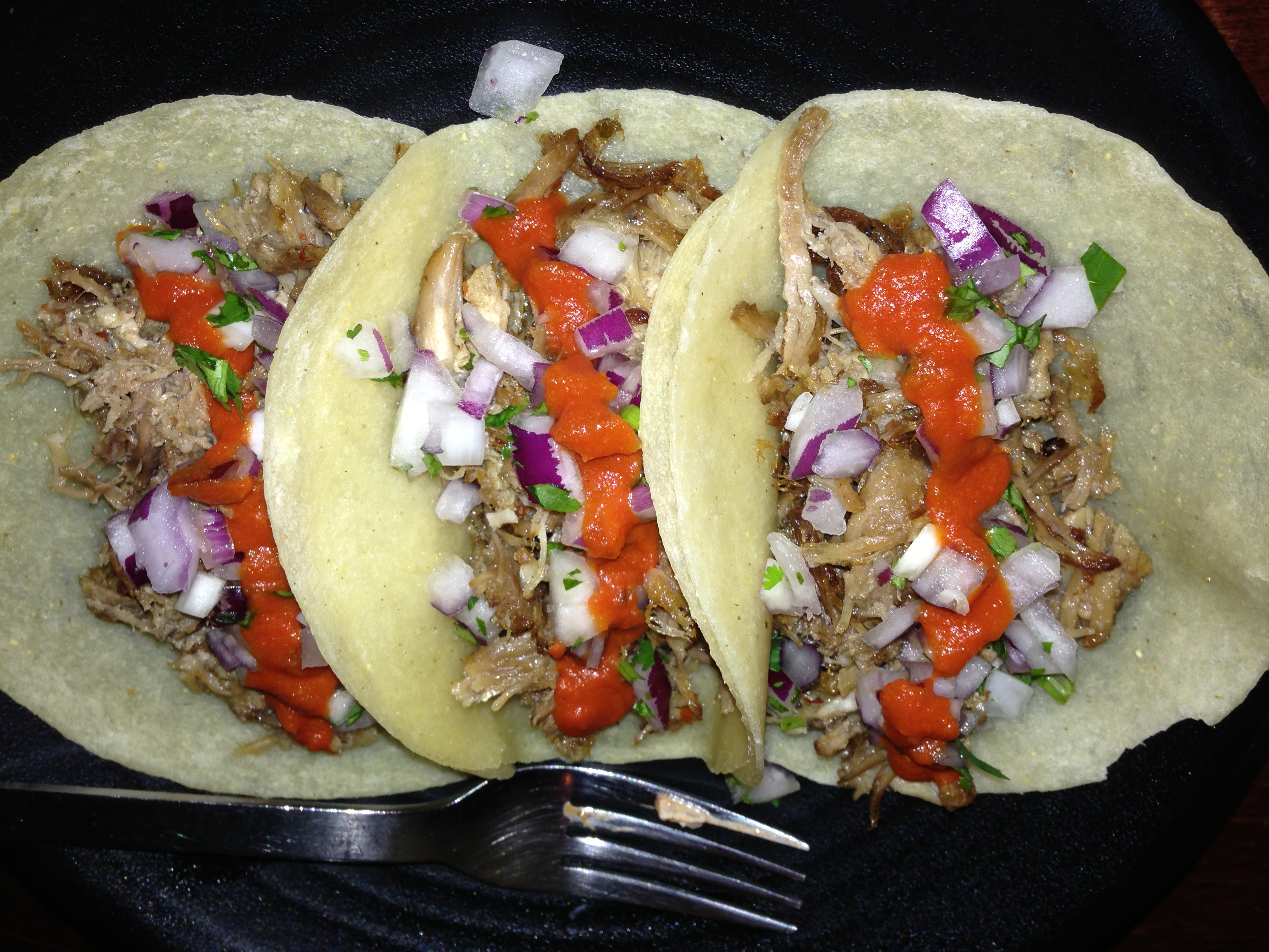 Not only were the fries made to perfection, but the chopped onions, tomatoes, jalapenos, and sour cream managed to dance a perfect ranchera with the spicy kimchi that was nestled amongst the western ingredients. When they came out, they confirmed my initial fears from my friends comments about the portion sizes. These were the smallest tacos I’ve ever eaten.