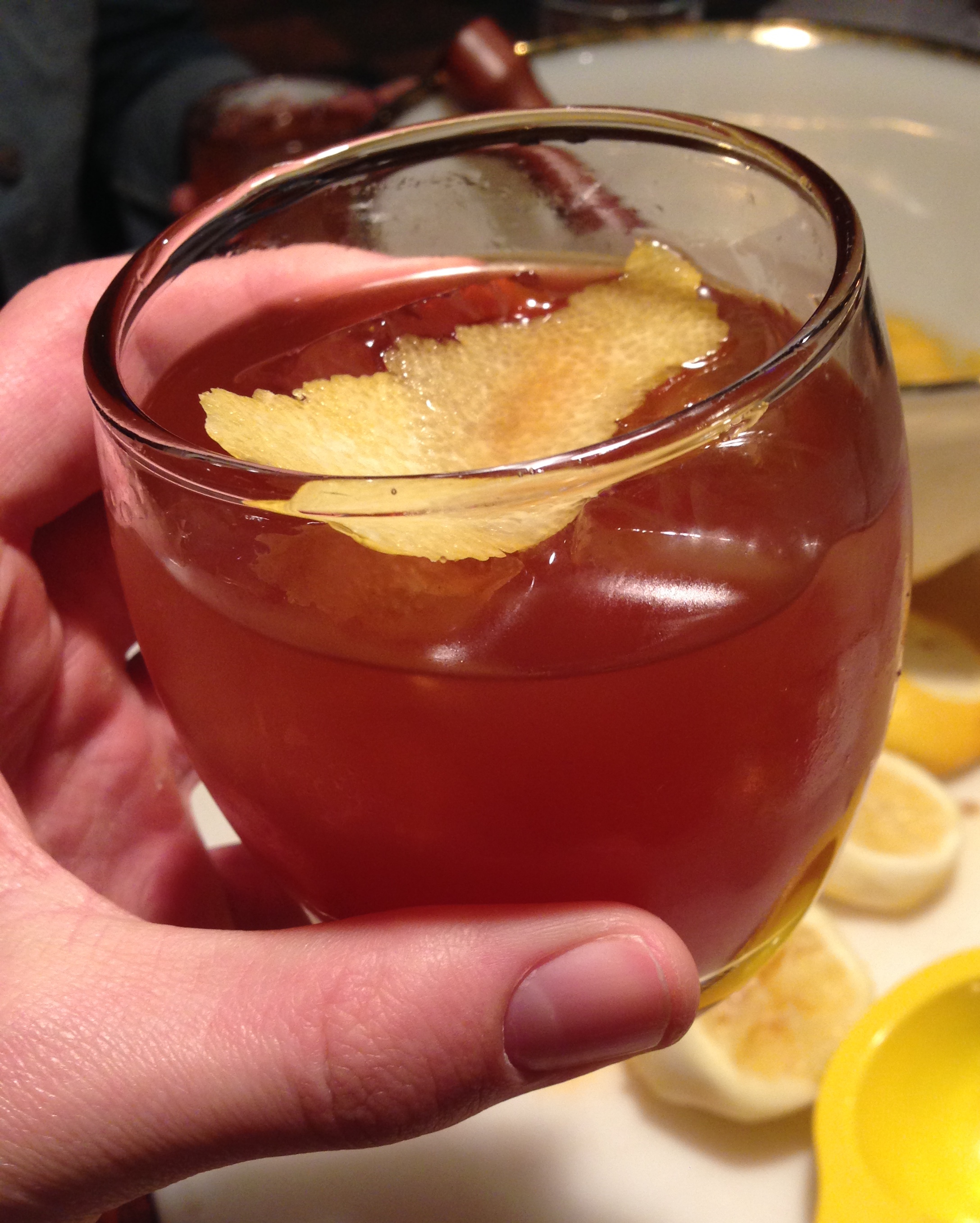 While I was going to town doing the ground and pound to the bowl’s contents, the waitress came over and patronizingly/humorously showed me proper muddling technique. It became a reoccurring punch line (pun intended) throughout the class much to the amusement of my female companions. However, it was my time to shine when I had to juice the lemons for the sour portion of the punch. I should have had my jersey retired with how much juice I got out of the fruit since I even got a couple nods and “good jobs” from the staff when they walked by our table.
