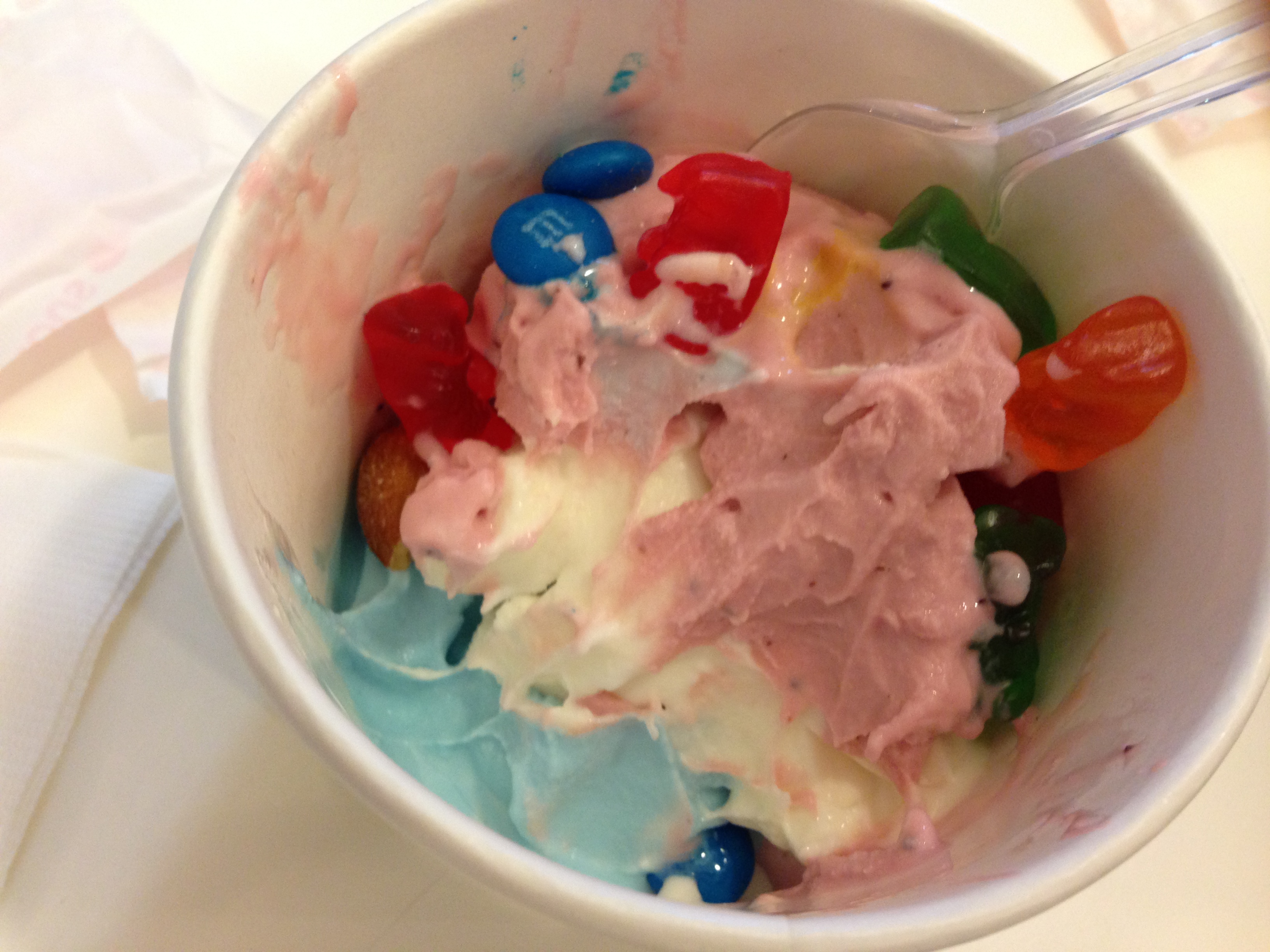 The blackberry flavor was delicious since it actually tasted like eating fresh blackberries minus the pesky seeds. Then came the rice which was really odd because I couldn’t determine whether it had more of a vanilla flavor profile to it, or perhaps it was more like the plain frozen yogurt option. Finally, there was Blue. It definitely was the superstar of my cold creation much like the Eiffel 65 hit circa 1999, but it definitely wasn’t played out by any means from my first spoonful to my last. Turns out it tasted like a tropical fruit punch of sorts. As a whole, my experience was a satisfying spectrum of flavors that ranged from more conventional to the more bizarre yet surprisingly delectable.