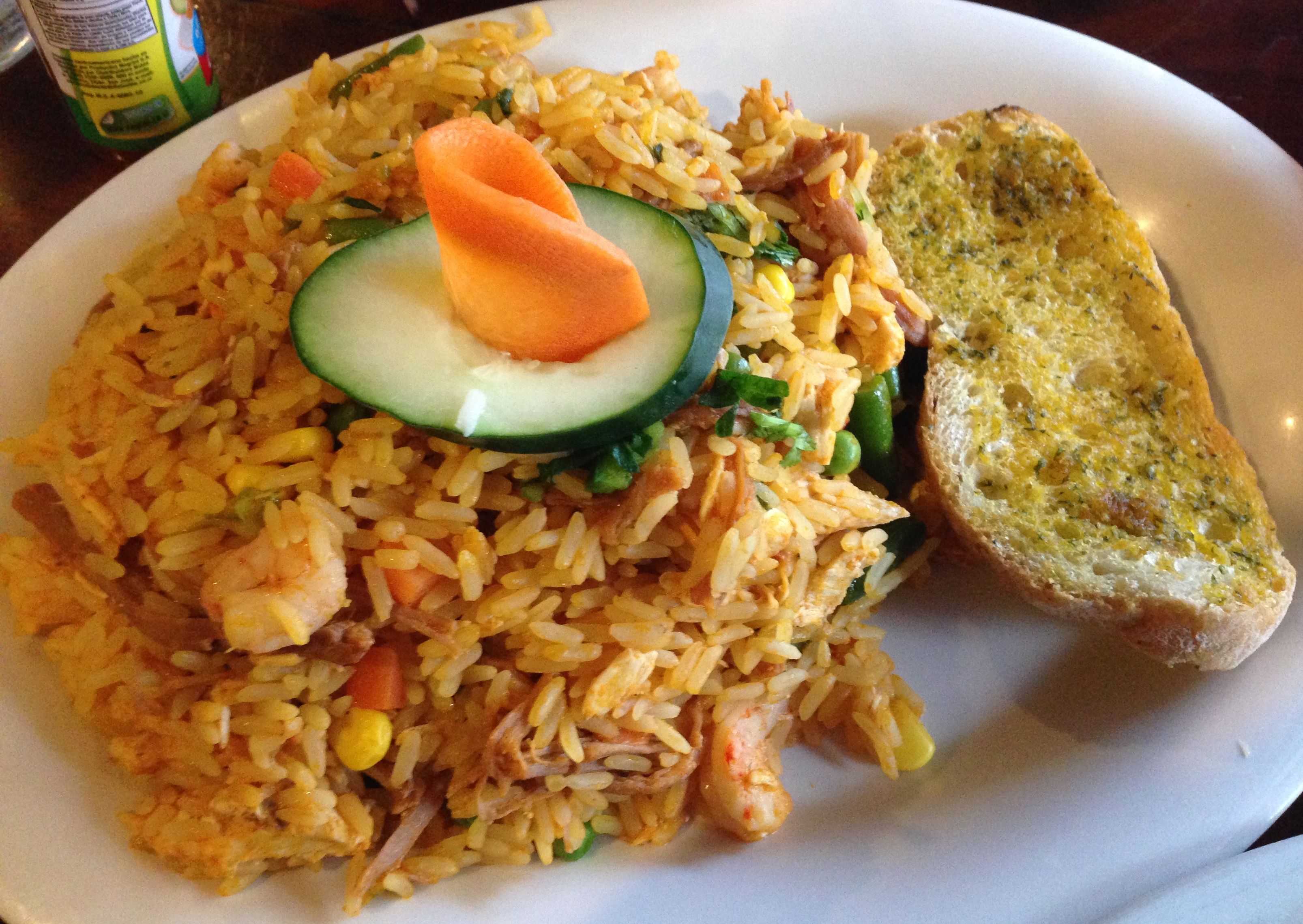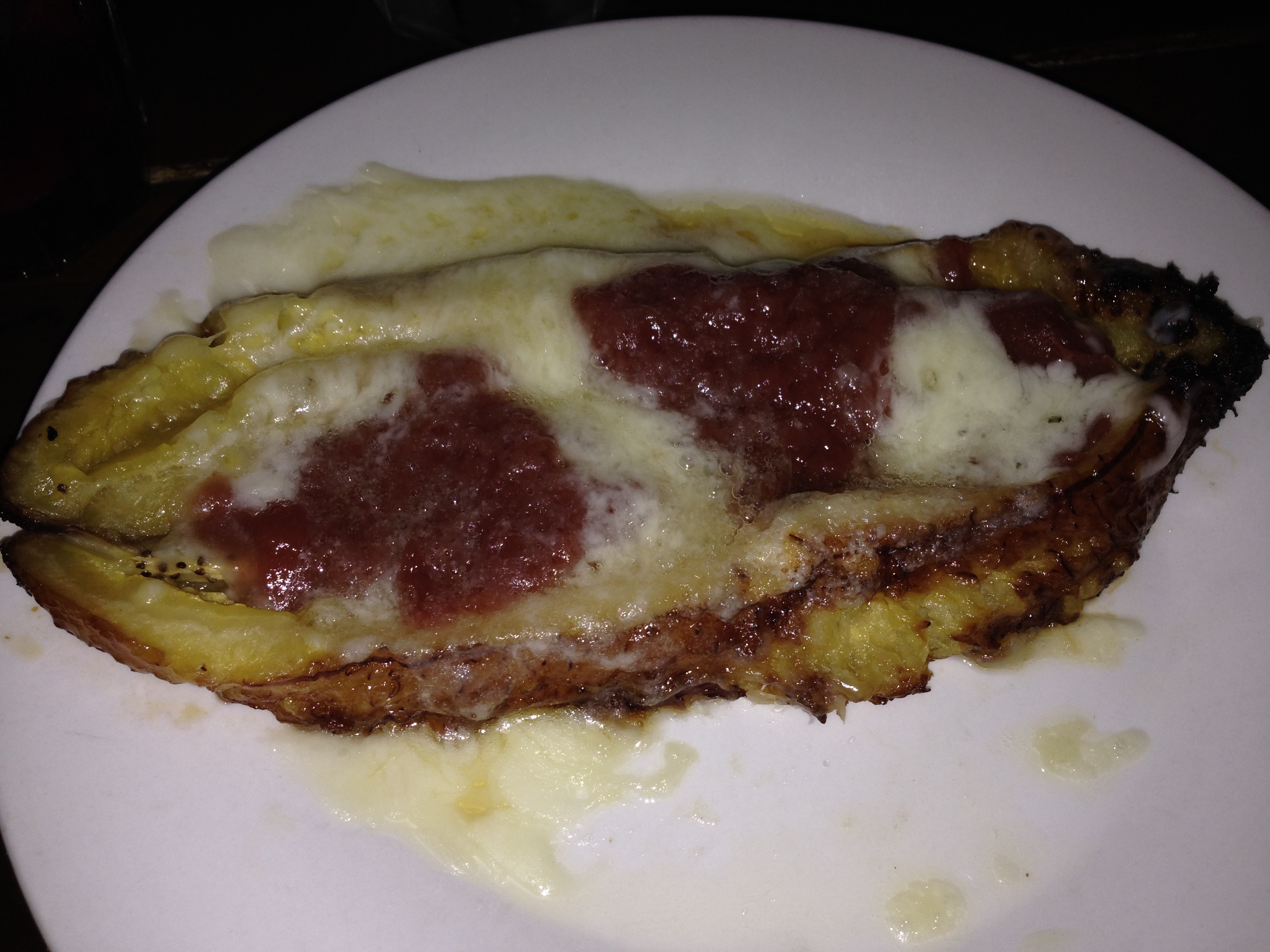 The word “chicha” has a murky origin since it can be found in various forms from Mexico to Argentina, but the Royal Spanish Academy states that it most likely comes from the word “chichab” or “corn” in the Panamanian indigenous Kuna language. The Venezuelan version relies on rice that is boiled and mixed with milk, condensed milk, and cinnamon which results in a rich, creamy vanilla milkshake/horchata-esque beverage that is poured over ice. It would be a great drink on a hot summer day. We were quite hungry that day, so we wanted to get an appetizer. We eventually landed on the tostones from the Spanish verb “tostar” or “to toast” ($7.25). These twice fried plantains hit the spot.