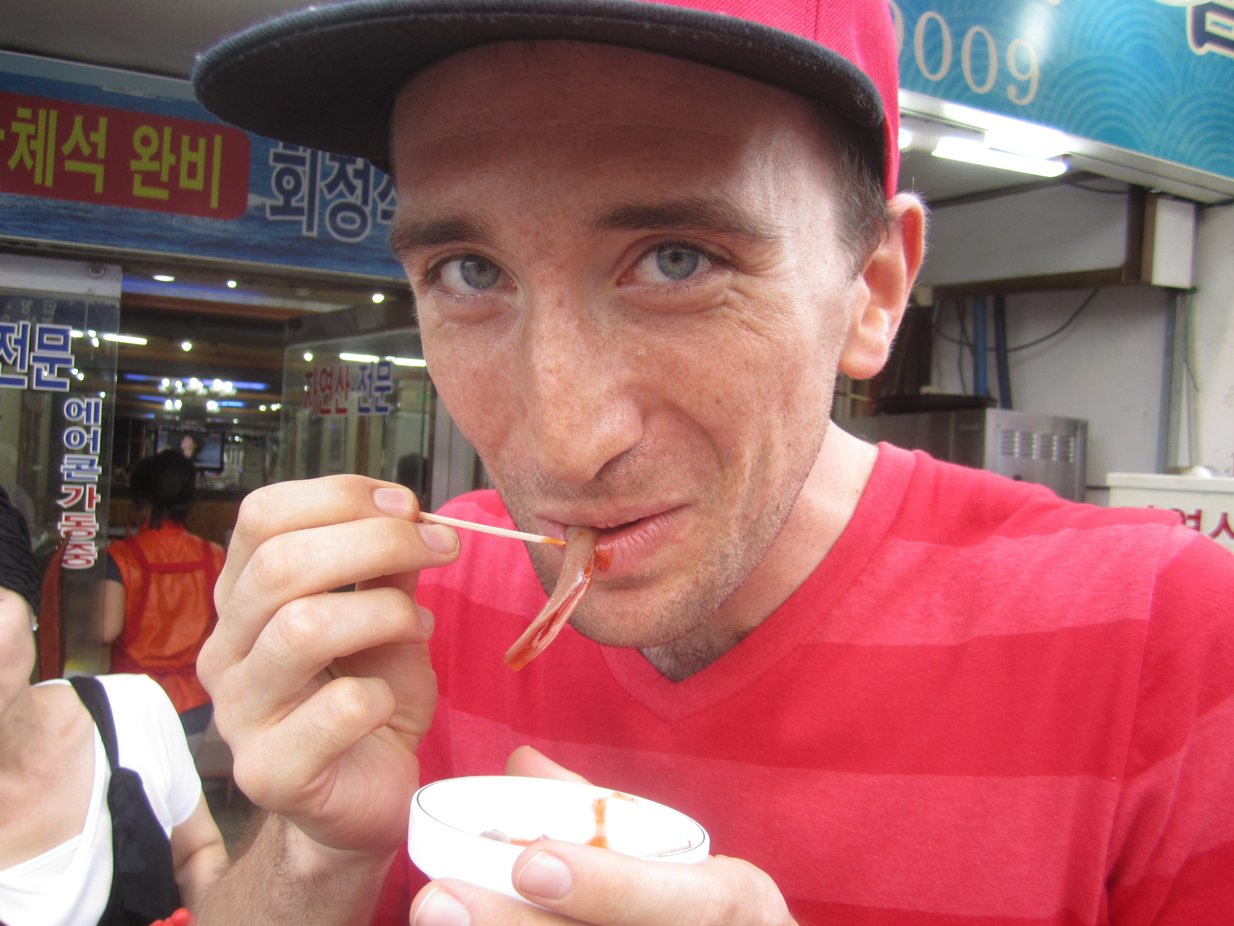 Eventually it came out, and they explained the rules to me in Korean. I saw most of the restaurant was watching me as one of the spectators sitting next to me on the floor decided to jump in and translate for me. If I finished everything on my plate along with a bowl of rice in 20 minutes, I’d get it for free and my picture on the wall. I looked down at my plate which was bigger than a hubcap loaded with three mammoth slabs of pork staring back at me like a den of rattlesnakes about to strike.
