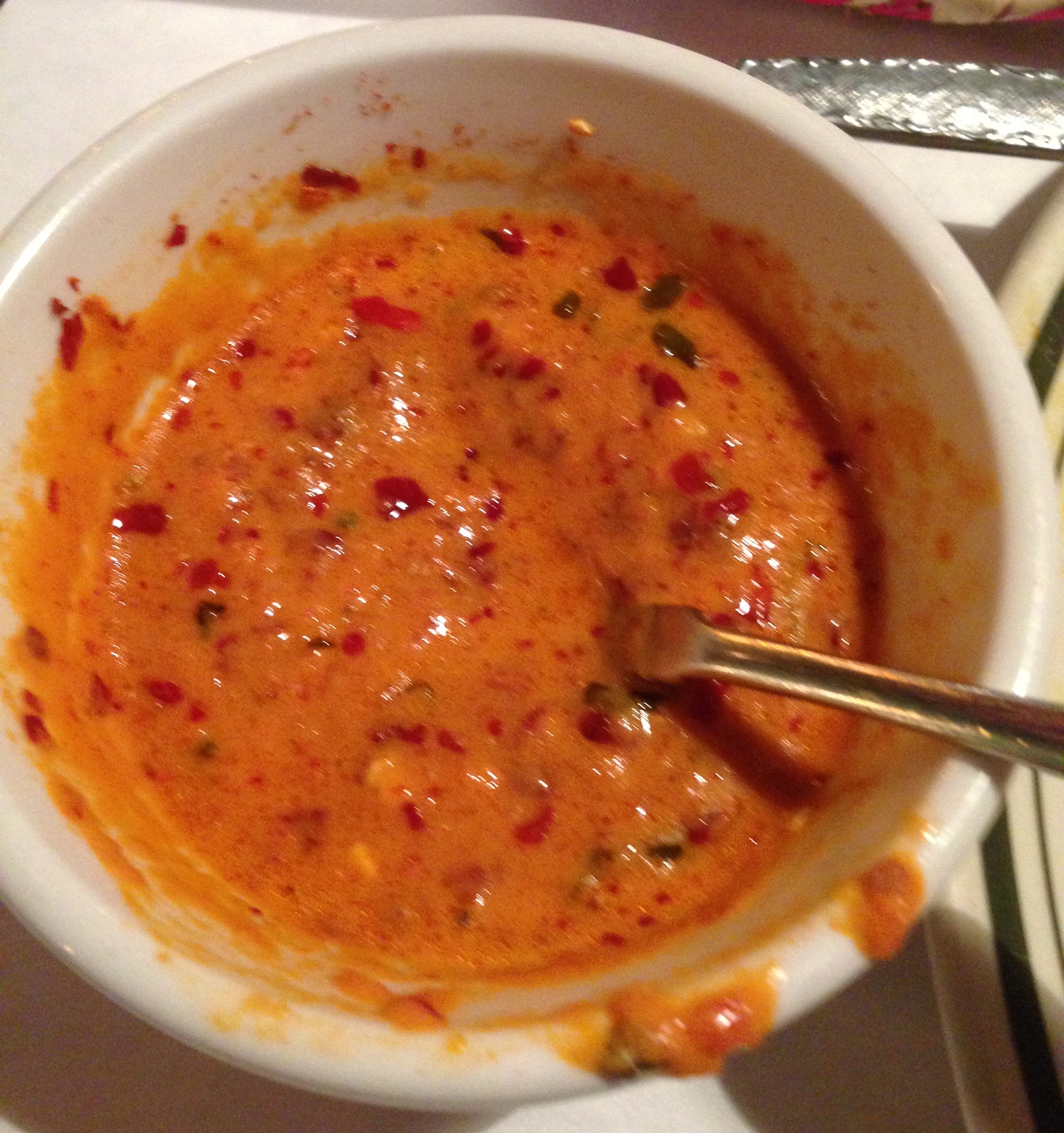 This was a definite highlight when this Catalonian bowl was still bubbling when placed in front of us. From the size and quality of the olive oil/garlic/chili mix the shrimp was swimming in, it was the ideal tapa. Next was my favorite tapa: patatas bravas ($5). These “wild potatoes” are my judge of whether or not a restaurant’s tapas are up to snuff (or if they even have them!). Honestly, if you’re a professional chef and have mediocre/terrible fried potato chunks and a spicy mayonnaise sauce on the side, you might as well pack up your cooking utensils and find a new day job. While that has been the case in very few of my tapateos, at Mercat they are the real deal. They are the closest thing I have tasted outside of Spain to the same bravas I would always get at my favorite cafe on Rambla de Brasil in Barcelona. First, the presentation was exquisite as they were lined up in a little row with the spicy sauce atop each potato like a barretina or traditional Catalonian cap.