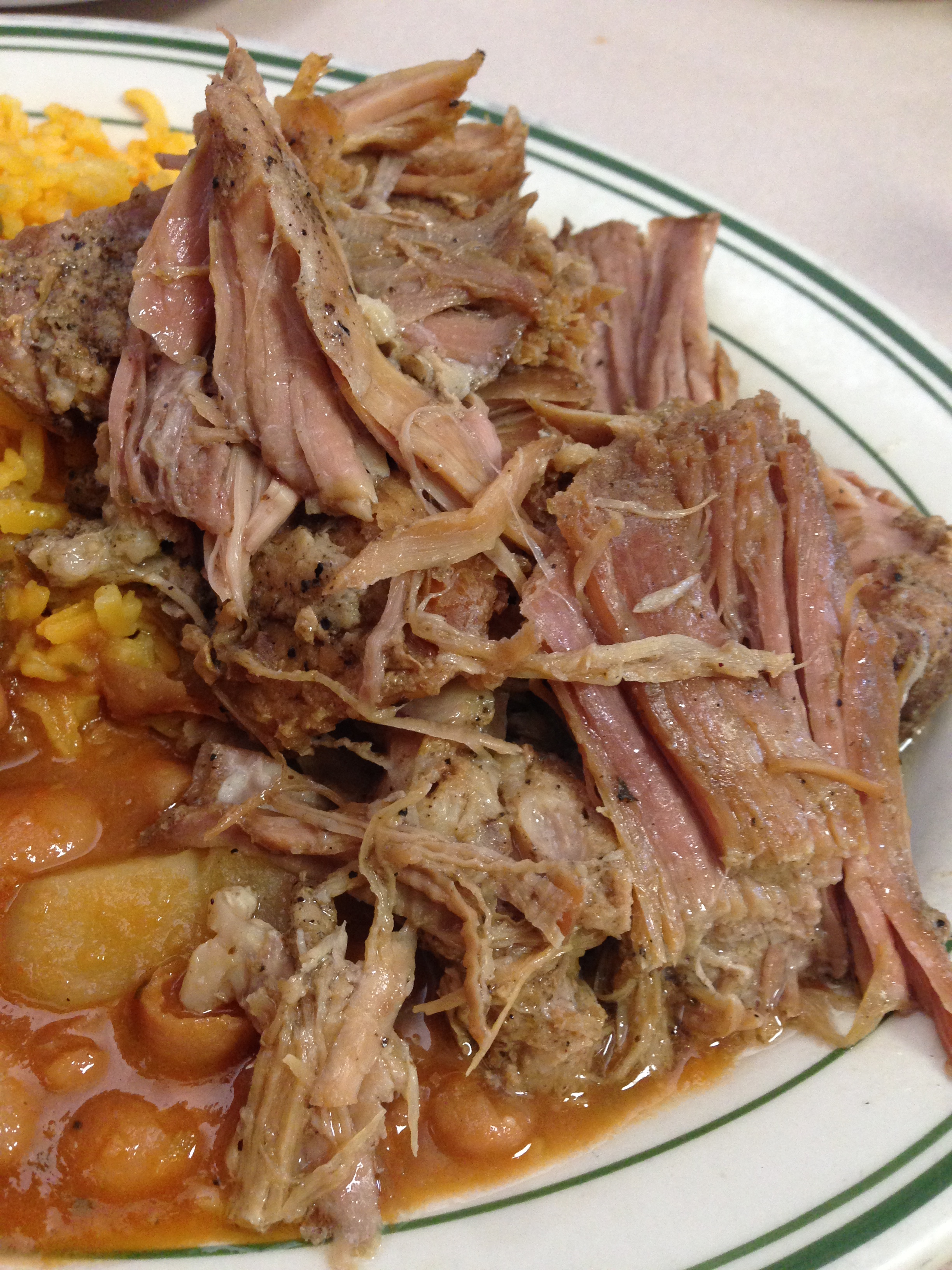 These spuds were accompanied by traditional mojo verde and mojo rojo (pronounced “mo-ho).