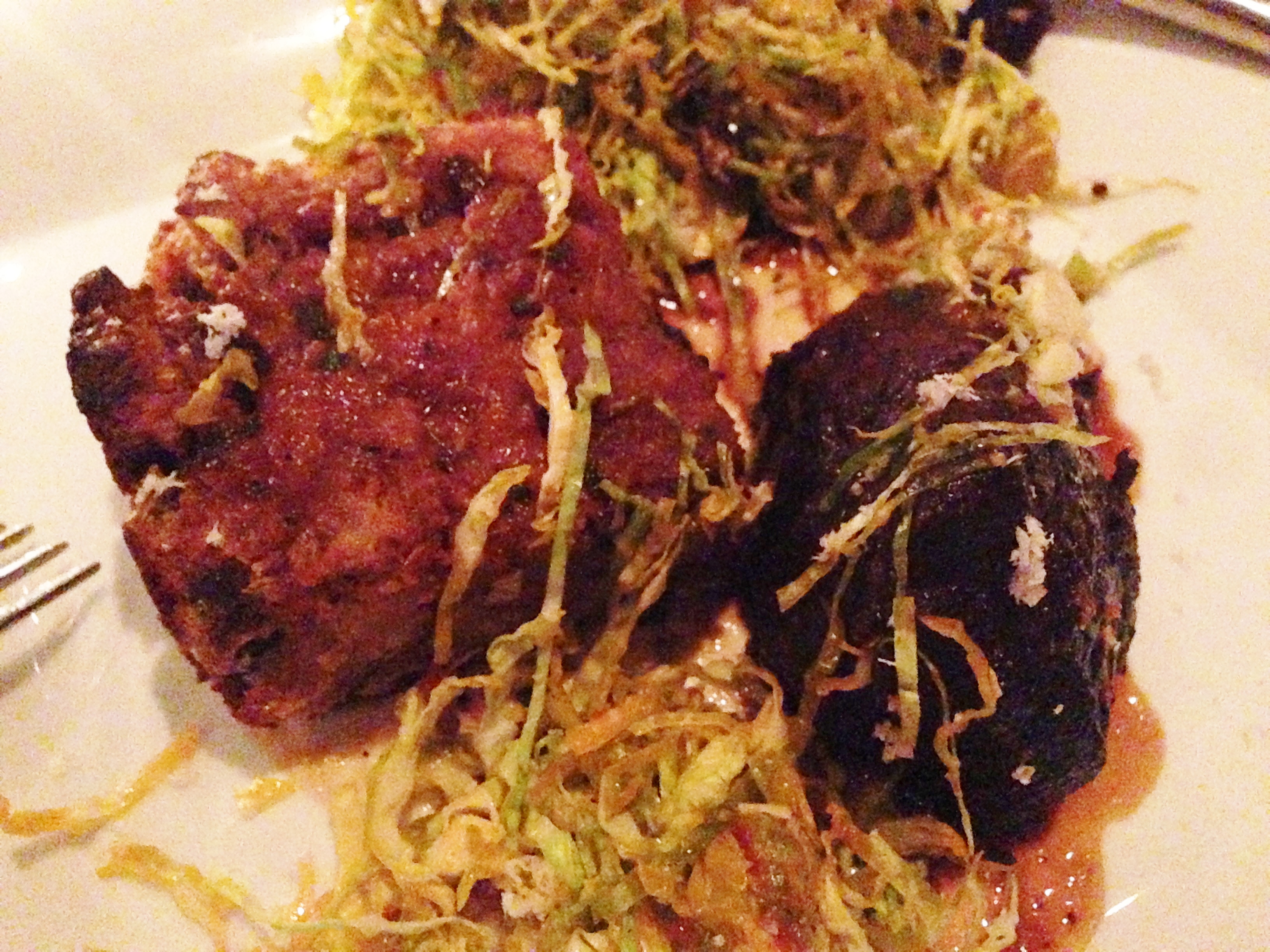 While the crispy skin gave the chicken a satisfying crunch, the meat was greasy, and the ricotta dumplings were bland and semi-soggy soaking up the au-jus. As for Janice’s beef cheeks, I actually preferred the brussel sprout salad that had a tangy vinaigrette over the over roasted meat.