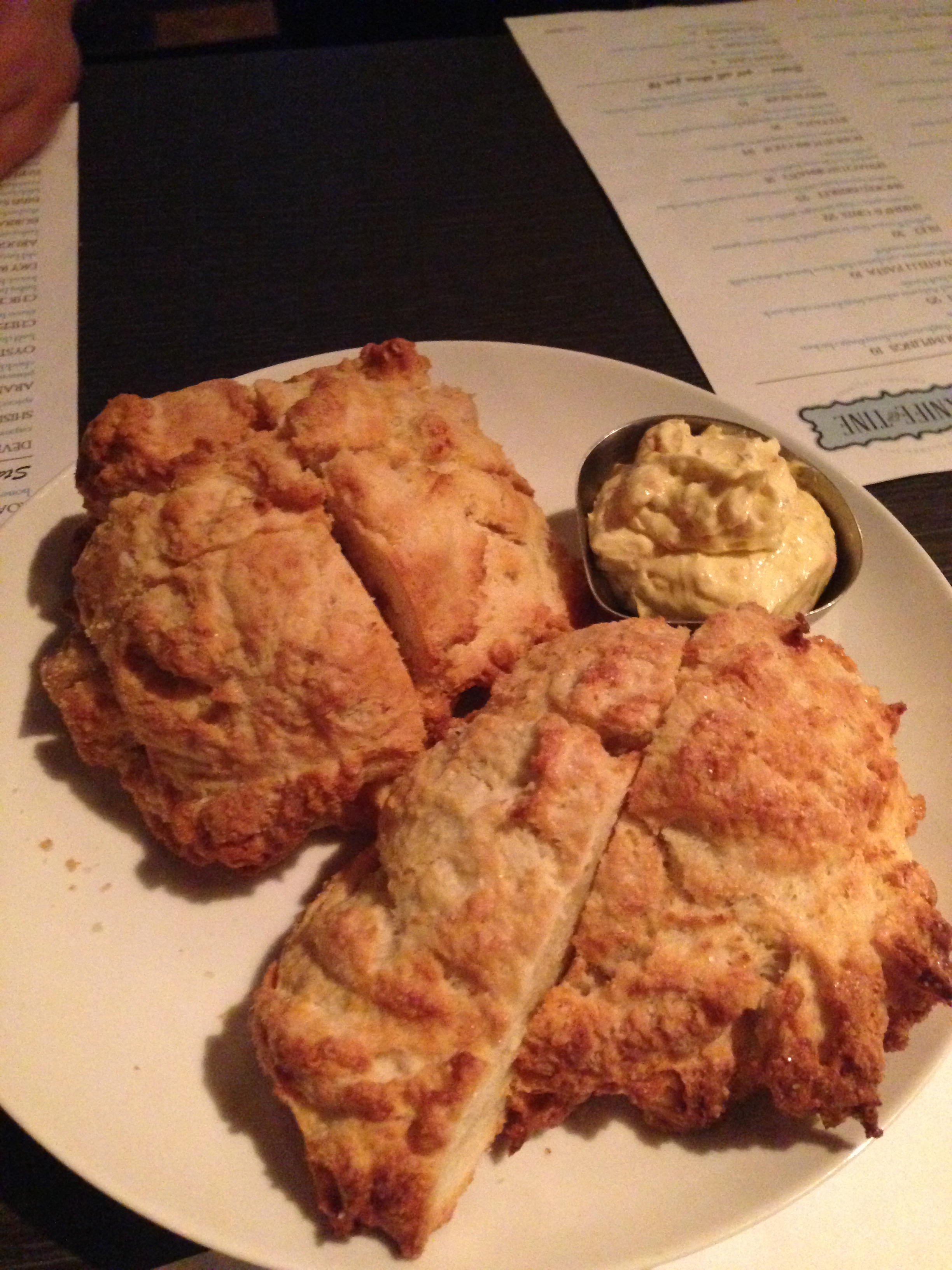 Update: Even though this post was very negative of Knife and Tine in Chicago during Restaurant Week, we were treated to a comped meal courtesy of the management. With this free money, we spent it very well given that their menu had plenty of great options compared to the Restaurant Week offerings. While the food from our first visit was either bland or super salty, the food this time around was great all around since they weren’t under the gun to throw out tons of food all at once. We started the meal with a free plate of their biscuit bread.